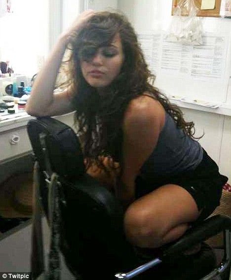 The change is subtle – the sway of the hips, the moistness of the lips, the arch in her back, the new veil over her eyes, her gait, perhaps even her voice… girls know when other girls have lost it. So check out Miley in these twitter photos posted by Adam Shankman who is directing her new movie…