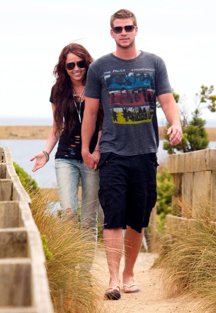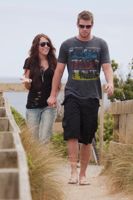 Miley Cyrus, 16 years old, is in Australia with her boyfriend Liam Hemsworth having arrived there on NYE to spend time with him and his family. The two were previously spotted together hand in hand romantic in Paris. Oh no. They’re not f-cking at all. Teens don’t have sex. What?