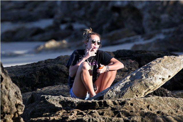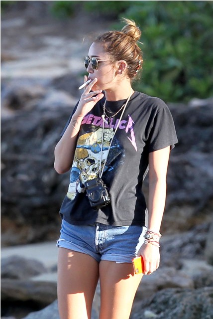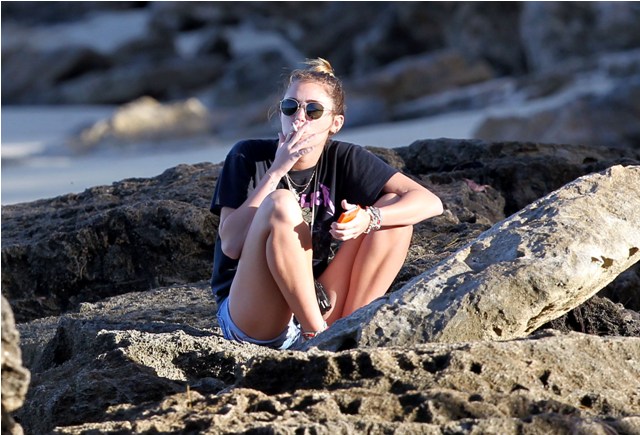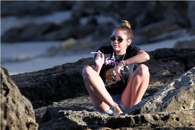 (Lainey: here’s Miley Cyrus just before the new year smoking in Hawaii. Her resolution, supposedly, was to quit.)