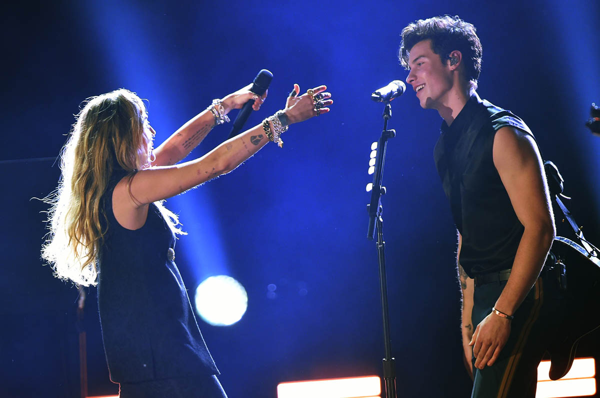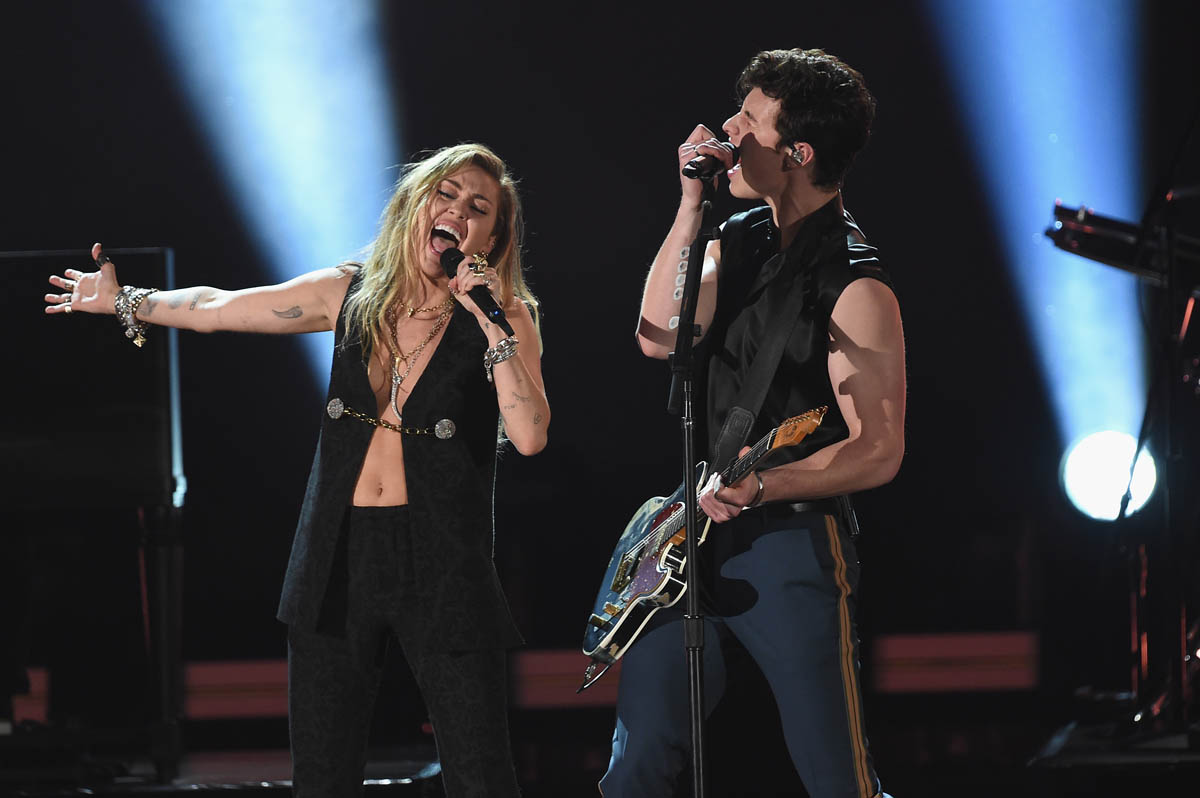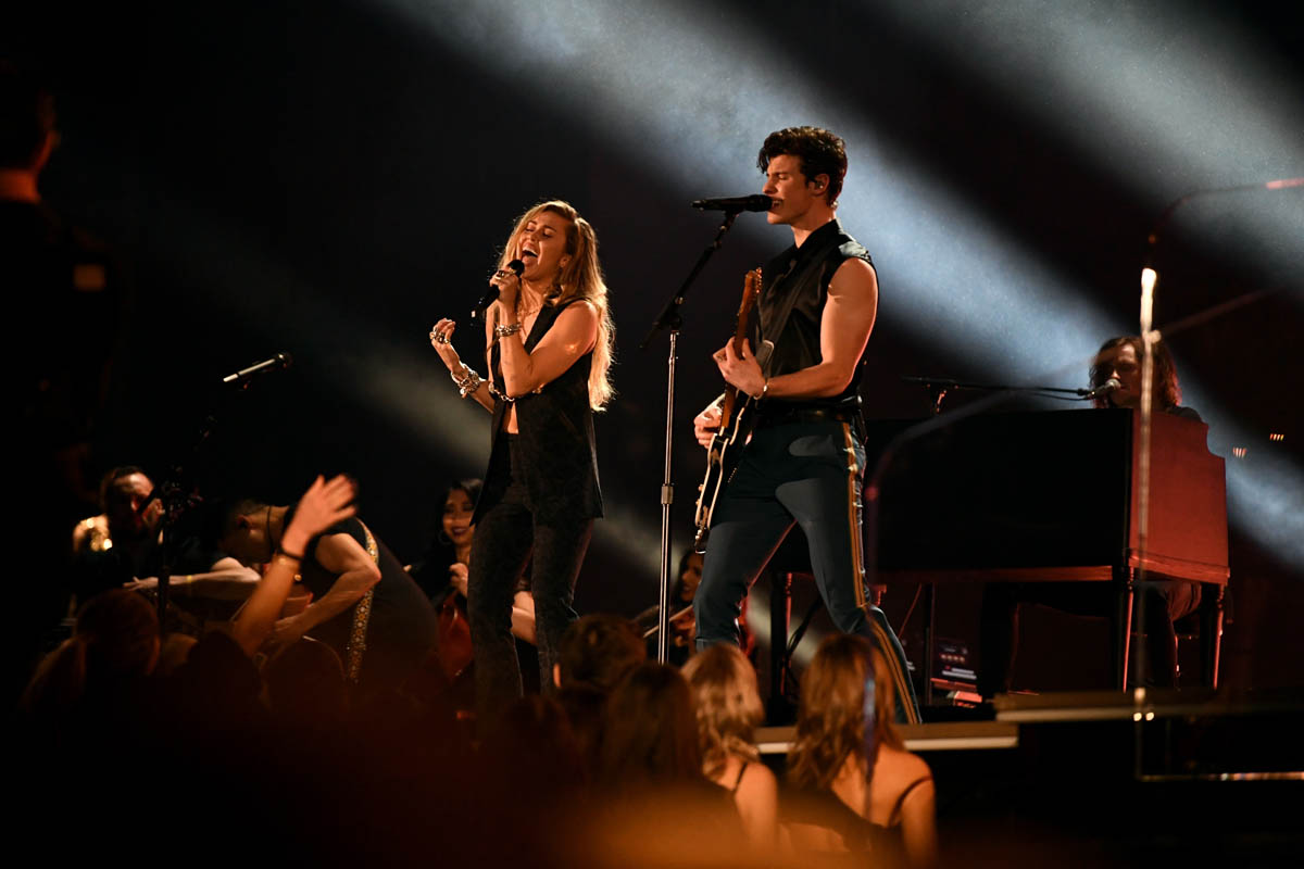 Last night at the Grammys, Miley’s talent was irrefutable. Her swagger was unmatched. Her star power, undebatable. Miley’s first appearance on the show was with Shawn Mendes. She was accompanying him on his song “In My Blood.” It’s Shawn’s song. He started solo with his guns out, making sure no one forgot that he’s delicious and Miley came in as backup. As soon as Miley showed up, Shawn seemed to be the one providing backing vocals on his own song. She out-performed, out-sang, and out-shone him on every front. I would’ve felt bad for him if they both didn’t look so freaking hot performing together in matching black. If Shawn was cooler, and if Liam Hemsworth wasn’t Liam Hemsworth, I might even Gossip Genie ™ these two together. They were that HOT. We all know Shawn could never keep up.