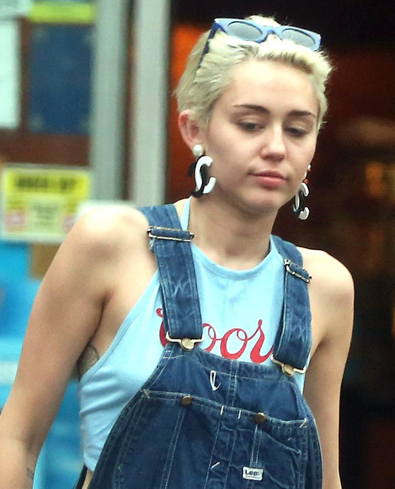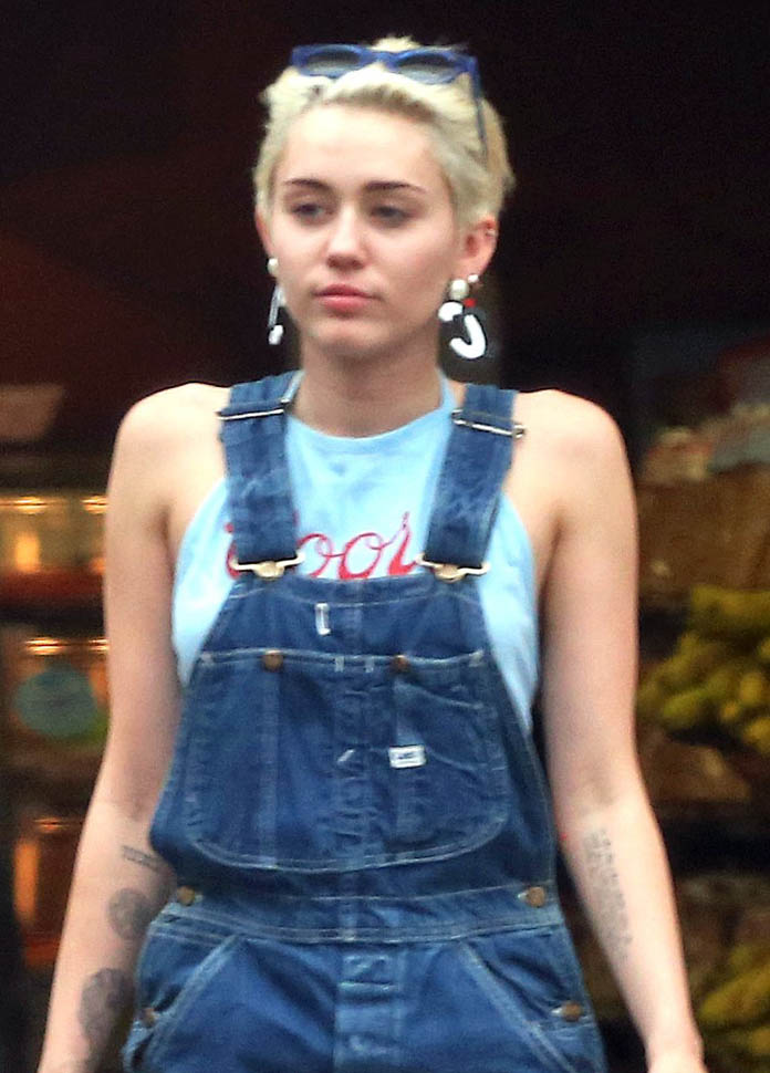 Miley’s been back in LA recently on break from her tour. I feel like…she gets papped a lot less than you would expect. Is that a stupid thing to say? I mean, you don’t miss her because she’s active on social media. But in terms of actual pap photos, the way Bieber and Selena get papped, and it’s always a f-cking mess, and even Taylor Swift leaving her apartment giving us a fashion show every day, it’s not as much. From the photo agencies I look at all the time, it’s definitely not as much. This is an exclusive set (to INF) of shots of Miley stopping for gas yesterday.