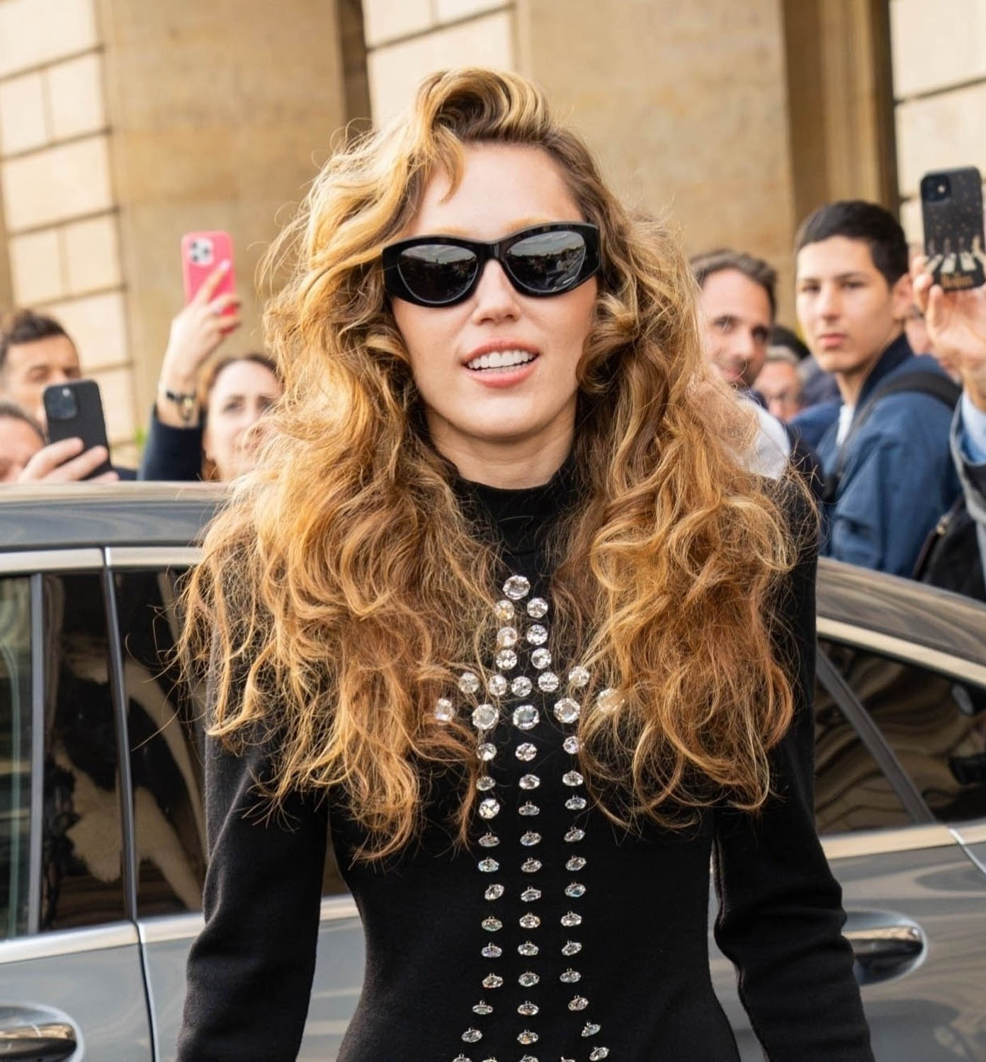 Here’s Miley Cyrus who’s been in Paris the last few days. Normally we’d be talking about her outfit, I just talked about a previous outfit earlier this week, but these are not normal circumstances. Her outfit, right now, is irrelevant.
