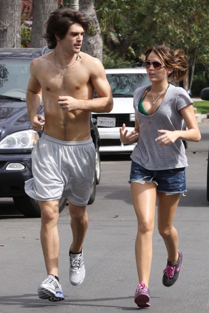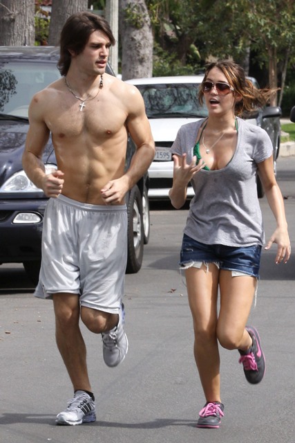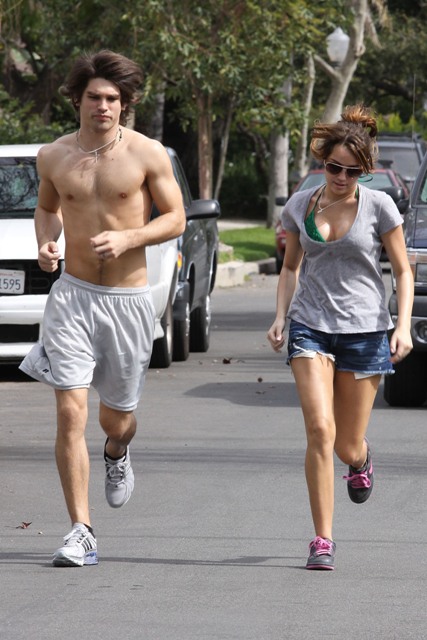 Anyway, the two went “on a run” the other day by her house in Toluca Lake. Justin, as you can see, is ripped. JailBait, as you can see, does not believe in Nike. Or New Balance. Or PROPER RUNNING ATTIRE. With tits like that, do they expect us to believe they actually ran farther than a block before turning the corner, giving the paps what they needed, and then walking the rest of the way?