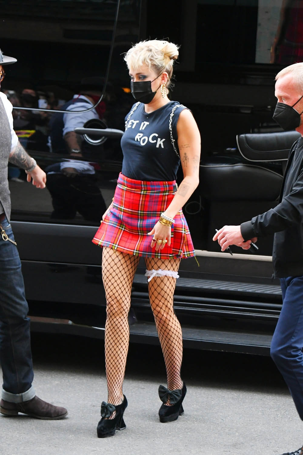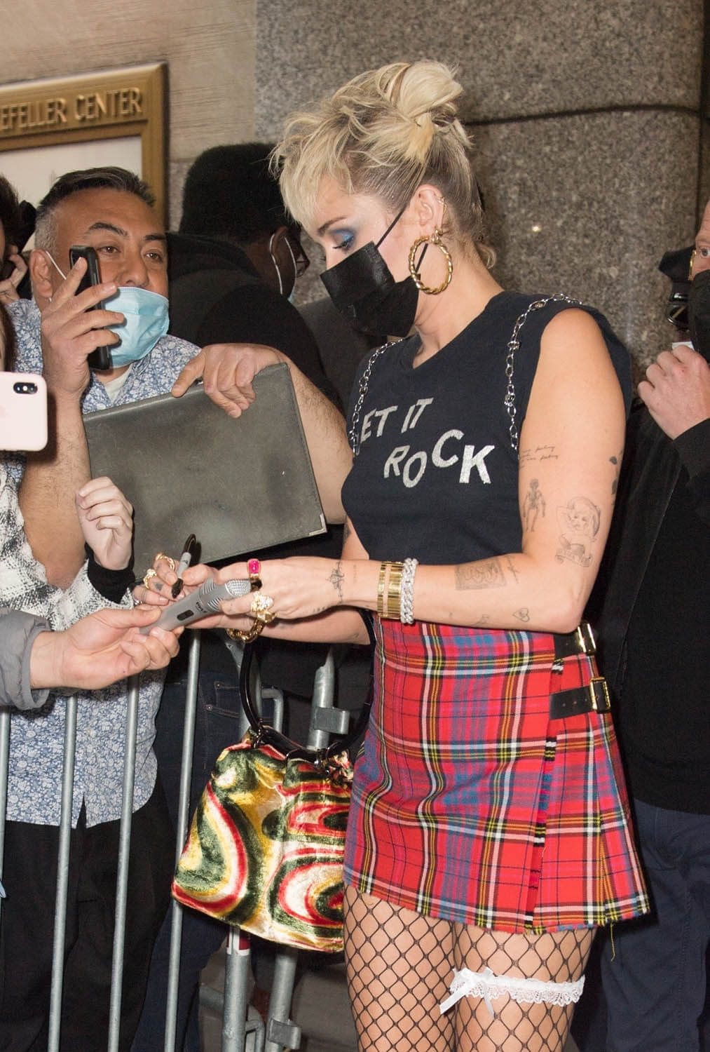 Miley Cyrus is in New York, seen here getting back at her hotel after Saturday Night Live rehearsals yesterday. She arrived in town with her mother, Tish, because it’s the Mother’s Day show and The Kid LAROI is there with her too so they’re obviously performing “Without You” during one of the musical guest segments.