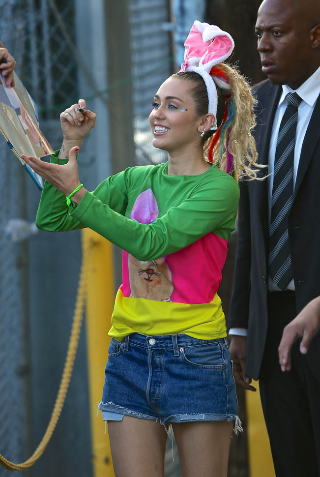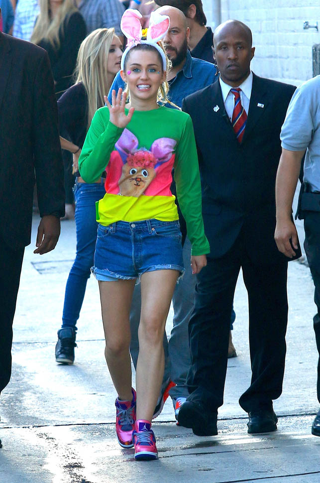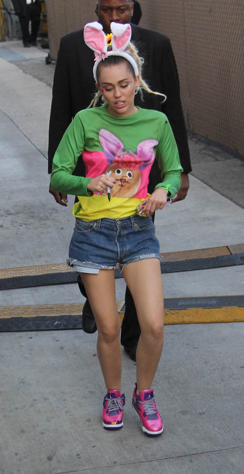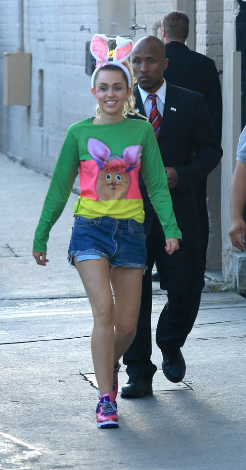 Miley Cyrus was on Jimmy Kimmel last night to promote the MTV VMAs airing on Sunday. As you know, she’s the host. It’s been a while since the VMAs have had a host who’s this big of a deal. She told Kimmel that they’re basically letting her do whatever she wants…which is what she’s supposed to say. But Miley’s the kind of person that if you tell her not to do something, she’ll just do it more. She’s an agitator. And you want an agitator up on that stage. Otherwise, what else would we talk about?