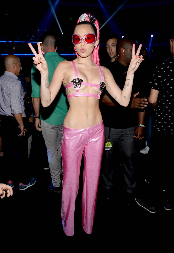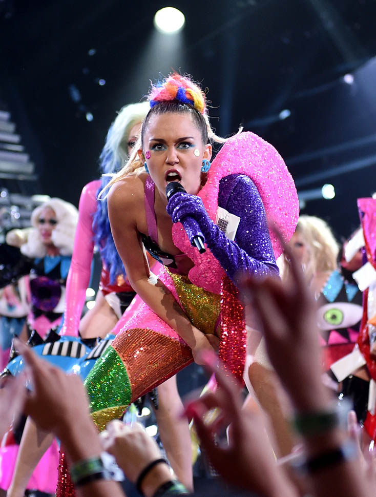 Did Miley Cyrus get her ass dragged by Nicki Minaj? If it was real, she looked terrified. If it was fake, she didn’t step back hard enough to make a difference. Real or fraud, Nicki’s face won that battle. If we’re talking about “VMA moments” though, Madonna’s the one who really has multiples. The wedding dress in the 80s, the stare-down with Courtney Love, the kiss with Britney and Christina…
