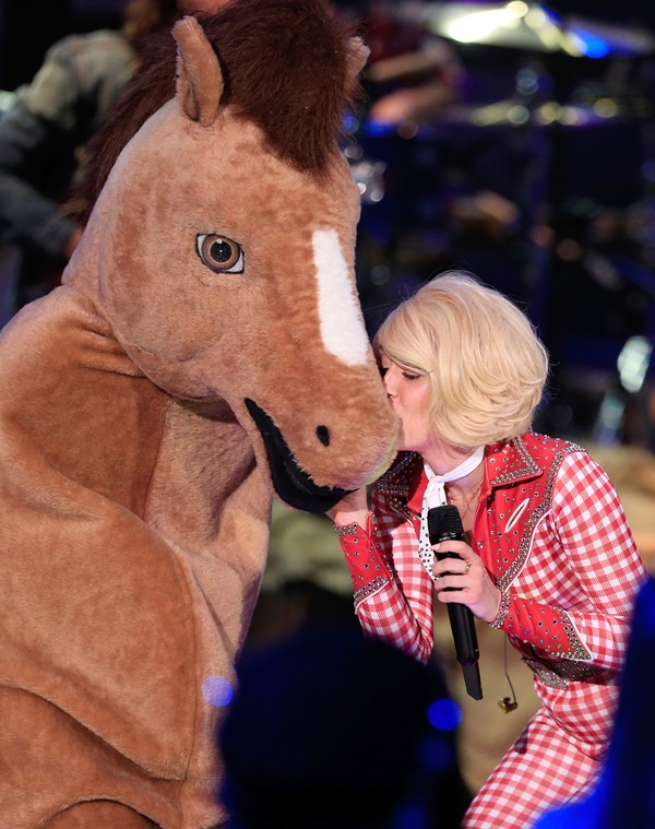 For Chinese New Year? Or to rep her country roots? I’m thinking country but why not? It is, after all, the Year of the Horse tomorrow. Did she hump it? Did she straddle it? Did she jam it in her crotch?