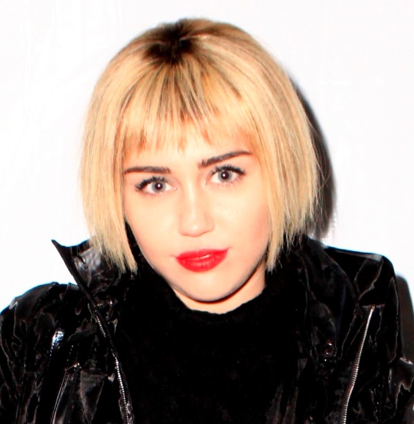 Miley got all up in Santa’s crotch at a Jingle ball or something and people were talking. To be honest, at this point I barely noticed. I’m more interested in her new hair. Here she is at the KROQ Almost Acoustic Christmas on Saturday in LA. As you can see, she’s bobbed now.