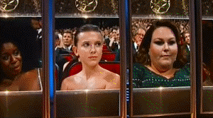 Like if anyone was allowed a little spontaneity and disappointment in not winning, it would have been Millie Bobby Brown. If anyone legitimately reacted the way Jackie Hoffman joked about reaction and could get away with it, it would be Millie Bobby Brown. That is if we would let her. But that’s not the business of young celebrity. It never has been. As long as they dress like little girls, they can act like grown women.