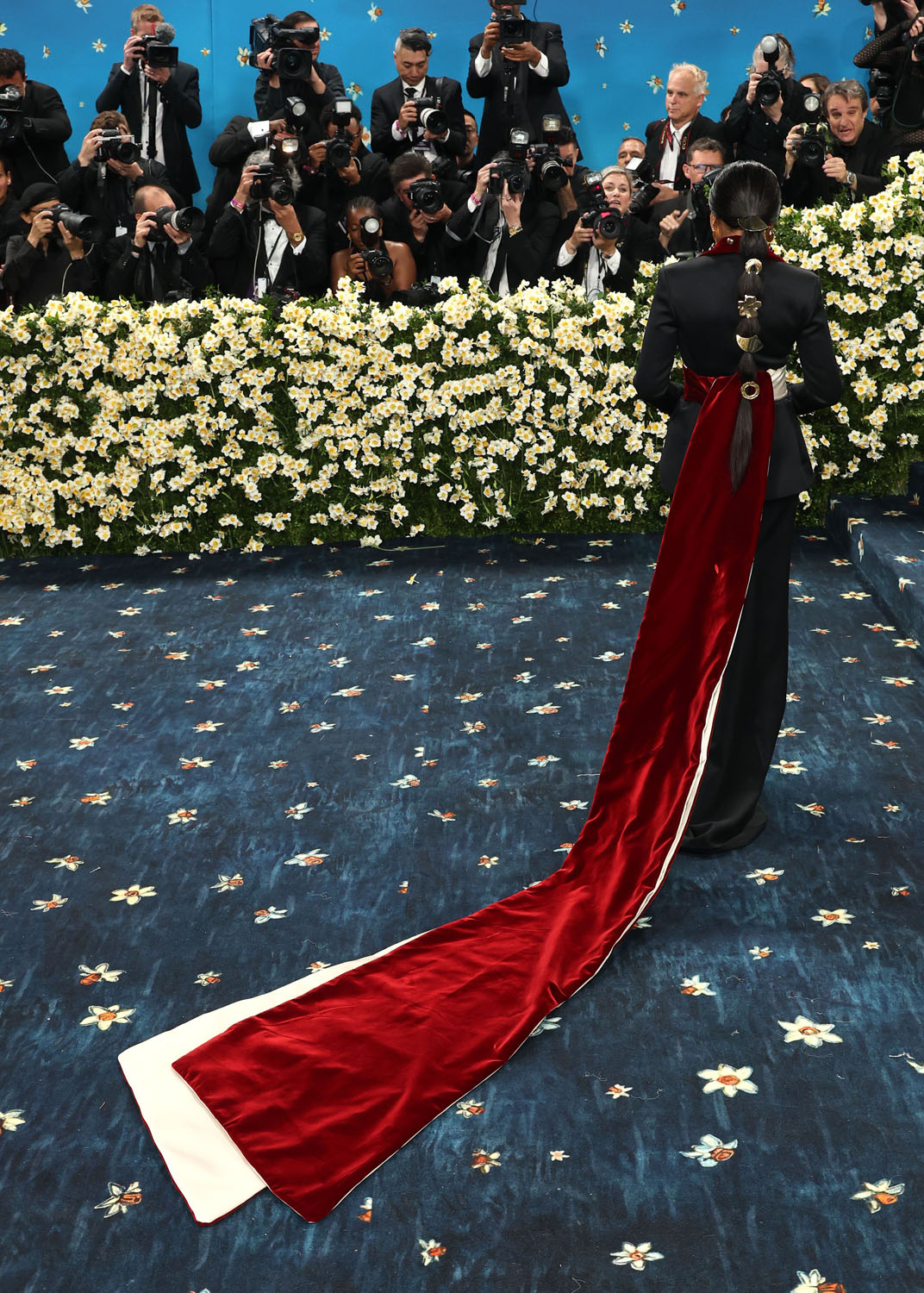 She wore custom Harbison Studio, referencing late 18th/early 19th century military style. The sash, the buttons, the lapels, it’s giving “revolution”, whether French or Haitian, take your pick. Do you hear the people sing?