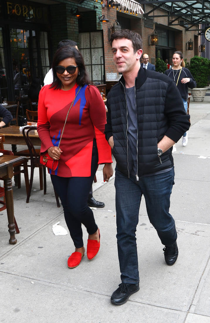 Noted BFF’s and former-something-or-others B.J. Novak and Mindy Kaling were spotted strolling around New York yesterday. She in a bright sweater with matching bag and purse, he in a guy-not-trying-too-hard uniform (jeans, grey shirt). They look straight out of a rom-com.