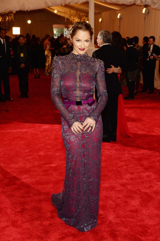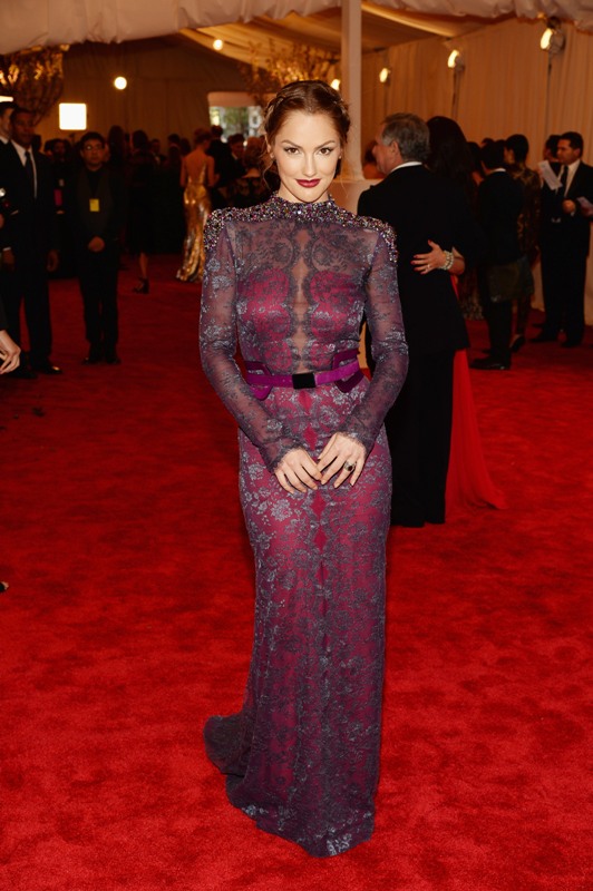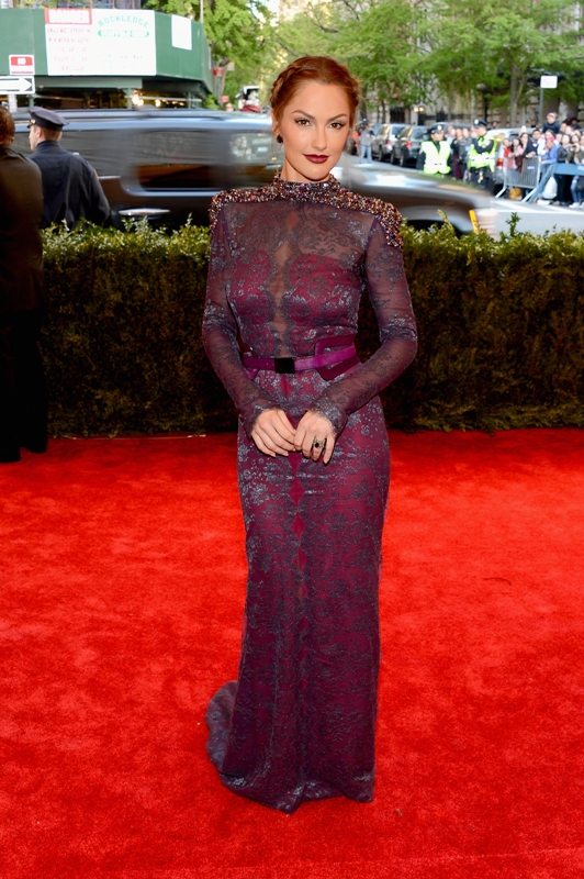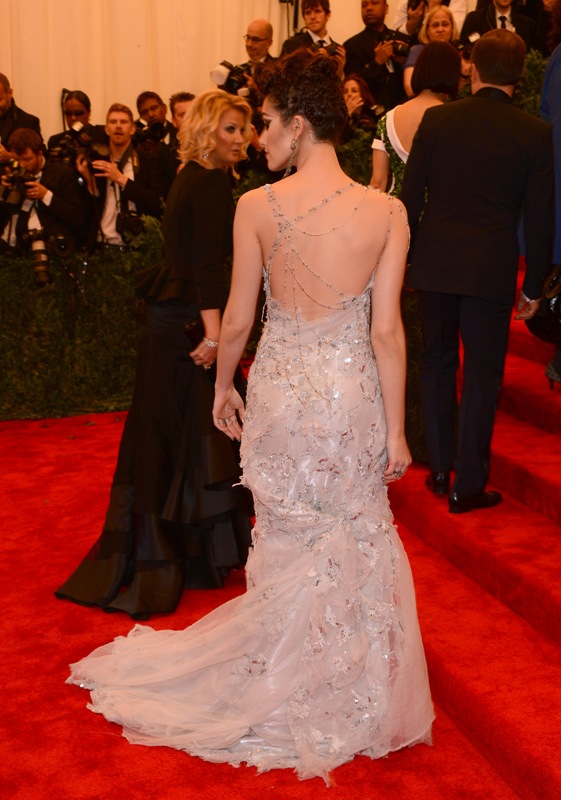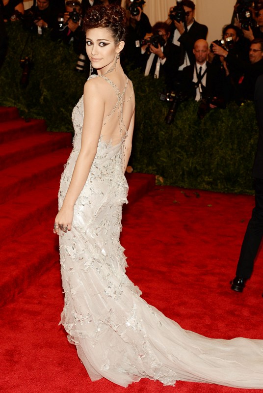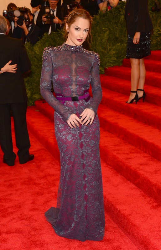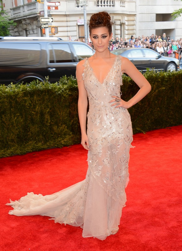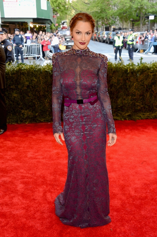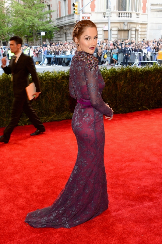 There were a LOT of braids at the MET Gala last night. As Duana pointed out, it’s like they all think the Khaleesi and Cersei Lannister’s hair counts as punk on its own. I can get down with the braid as part of a punk outfit, and you know, I’ve almost never hated a braid, but it doesn’t quite elevate when it’s matched with a purple very safe Carolina Herrera gown (are her breasts too low?) and an equally safe, horribly unimaginative Donna Karan. A silver sparkly dress doesn’t qualify as punk. Anywhere. Off you go, Rossum. Remove yourself.