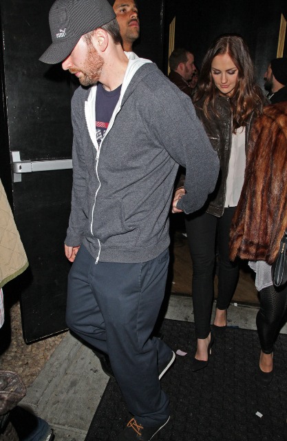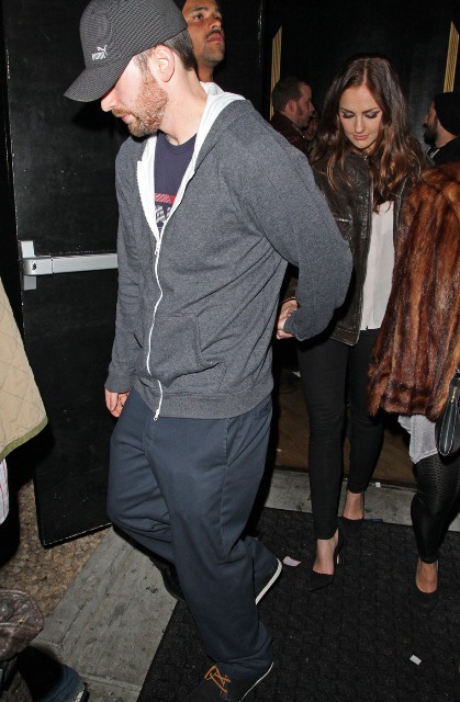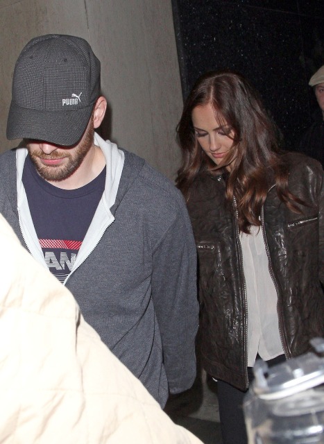 They've been official for a few months now, of course, but holding hands while *knowingly* papped is a new stage in a celebrity relationship. This means that they know that we know that they're together and that they're no longer interested in hiding it, nor do they care that we can see it. Here are Minka Kelly and Chris Evans leaving a club together the other night. Hot.