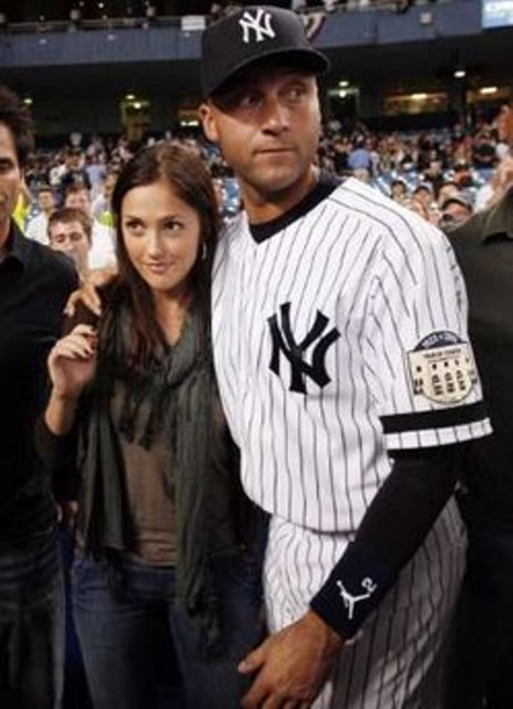It’s been a few months since their relationship was first reported – they usually stay very undercover. But last night, the final night at Yankee Stadium, the Yankee captain, one of the most beloved Yankees in recent years, if not THE most beloved, recently surpassing Lou Gehrig for the most hits at Yankee Stadium, a record he will now hold forever, in front of the press corps and the Yankee faithful, held his arm around Minka Kelly as they made their way through the crowd.