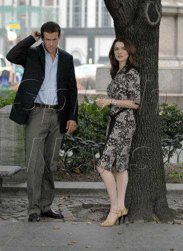 Rachel Weisz, Ryan Reynolds - filming scenes from an upcoming movie. Check it out, look at that kiss, the way they"re leaning in to each other, the body language - totally hot and also totally fake, as illustrated in the accompanying photo when the camera isn"t rolling. Kinda restores my faith in acting, you know? After too much Mischa Barton, when happy, sad, mad, and tired all blend to look the same, I"m encouraged by this new display of artificial chemistry. Besides, Rachel looks beautiful, non? Photo source