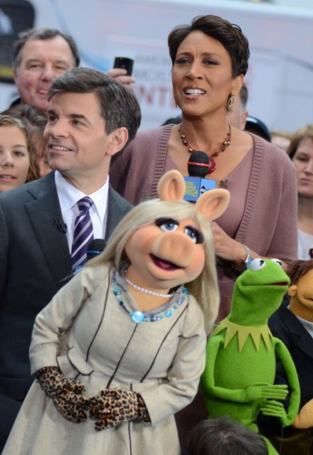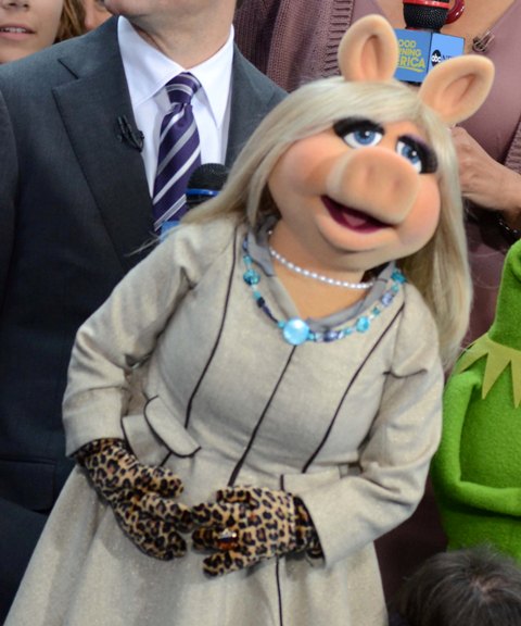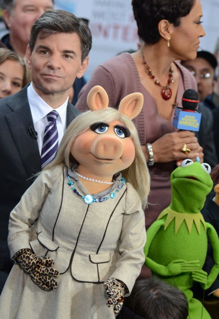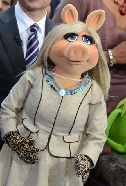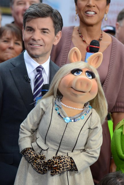 Piggy’s wearing a great coat. Her hair looks really good this morning too. How do you go about looking for a coat worn by Miss Piggy on a morning talk show?