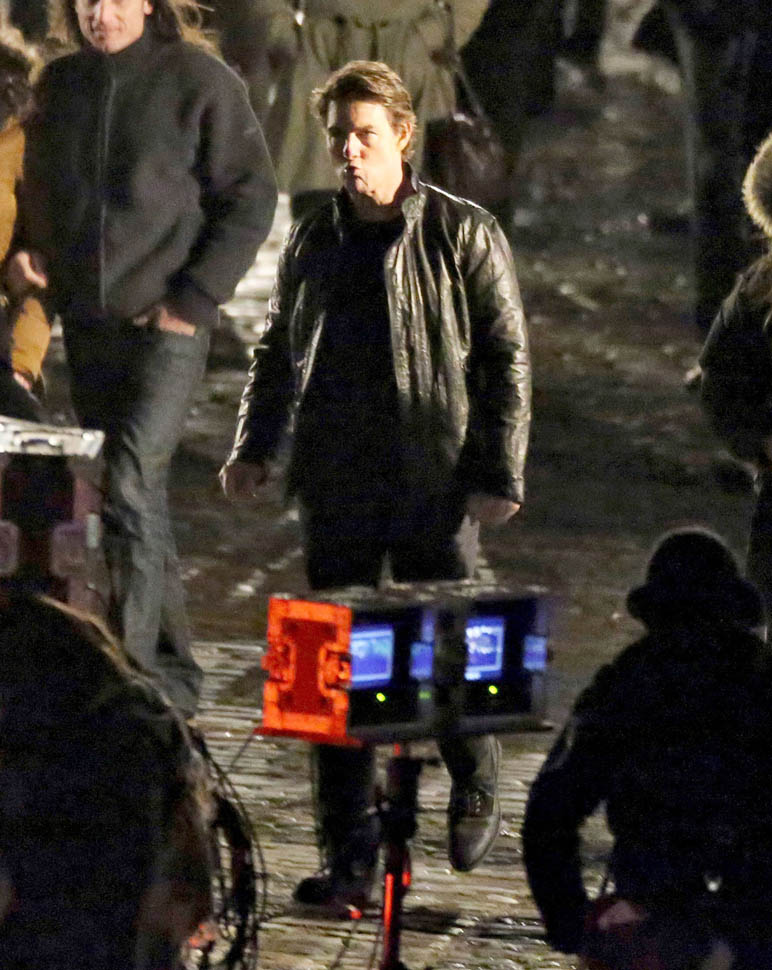 Attached - Tom Cruise on M:I5 set yesterday in London.