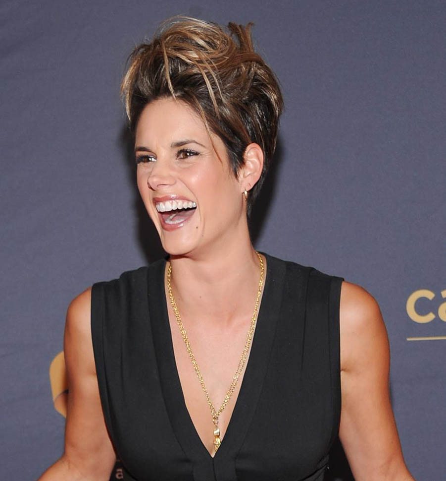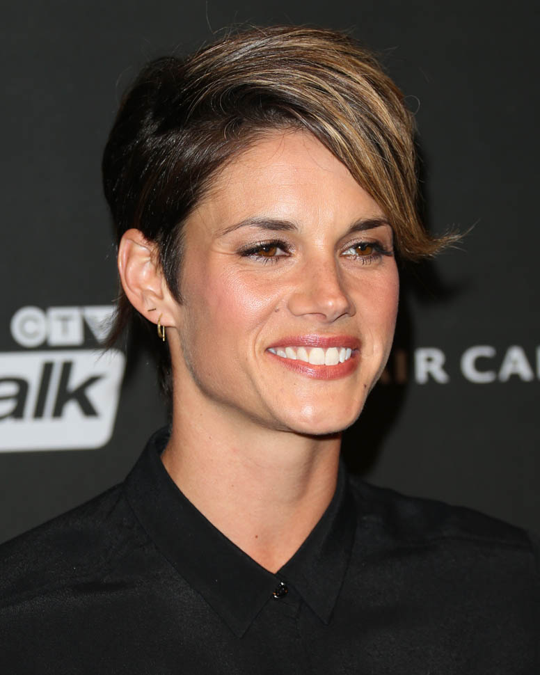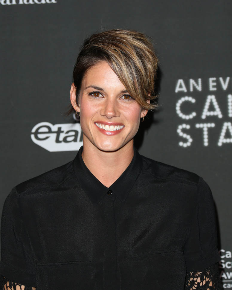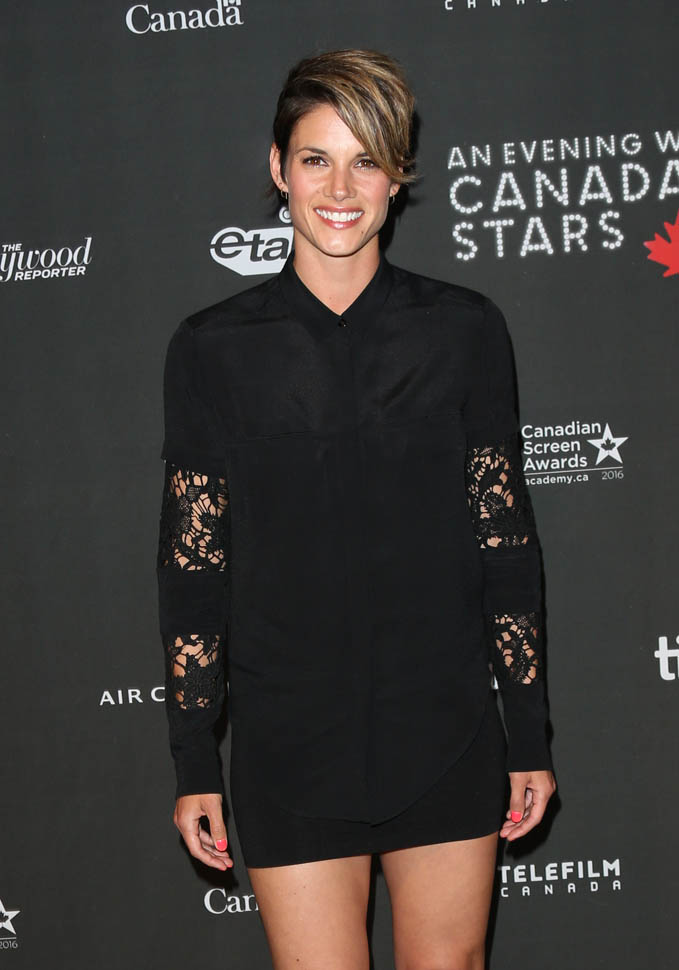 You make it about the hair. This is what I see happening here. The dress is fine. It’s black, it’s tight, it doesn’t offend but it doesn’t delight. The hair, however, is amazing. Especially considering that it’s cropped short on the sides and floppy long on top, which you’d think would present limitations.