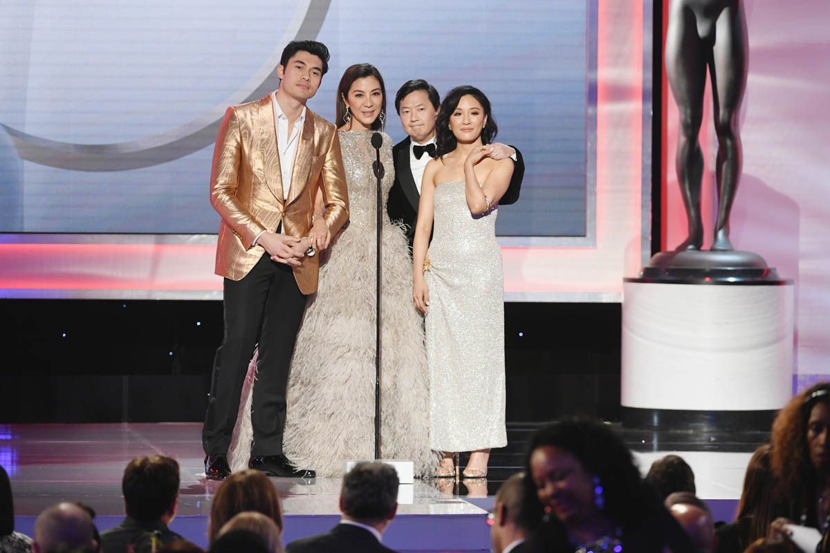 Crazy Rich Asians was not nominated for Oscar last week so the SAGs was the last awards season stop for the cast, at least until the sequel comes out. Which won’t be for a while since director Jon M Chu is working with Lin-Manual Miranda on the film adaptation of In the Heights and that doesn’t go into production until later this year. There’s no sadness here though, not when you consider everything that CRA has achieved: winning the box office several weeks in a row, further establishing Constance Wu as a leading actress, reminding everyone that Michelle Yeoh is a f-cking legend, introducing the world to hotness of Henry Golding (and all the other Asian male sexiness on display in the movie), and giving Awkwafina all the opportunities to steal every scene she’s in to the point that it seems like we can’t go a month without an Awkwafina headline about whatever new project she’s been signed to.