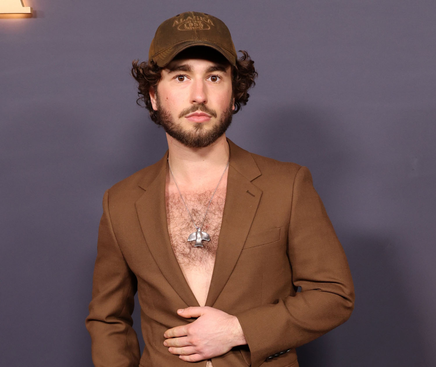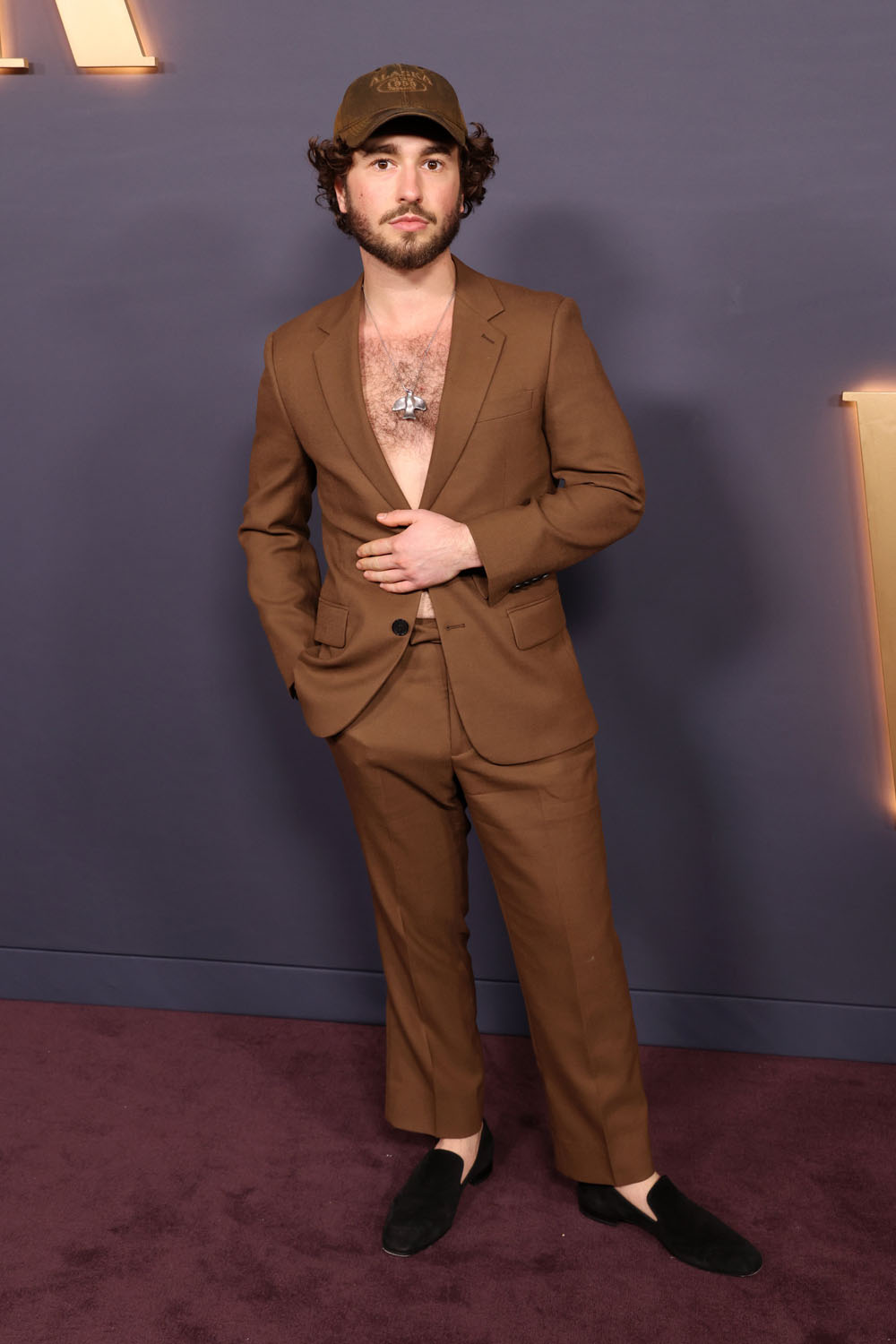 In a similar vein, Gabriel LaBelle decided to wear a trucker hat but no shirt. I know the youths are into “dirtbag” style, but can we agree to leave trucker hats in the 2000s?