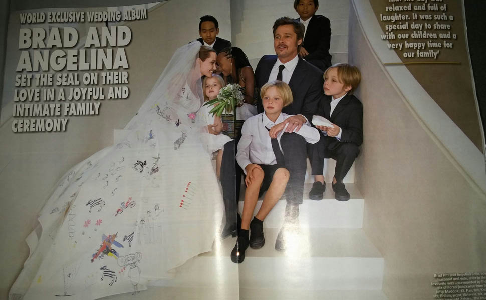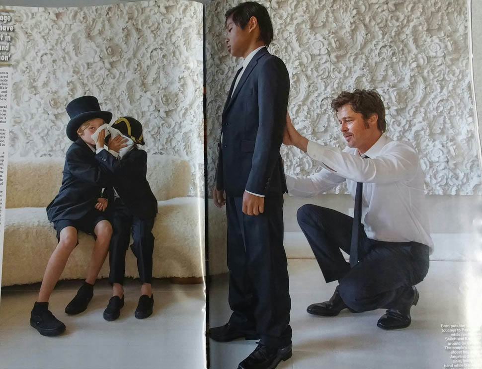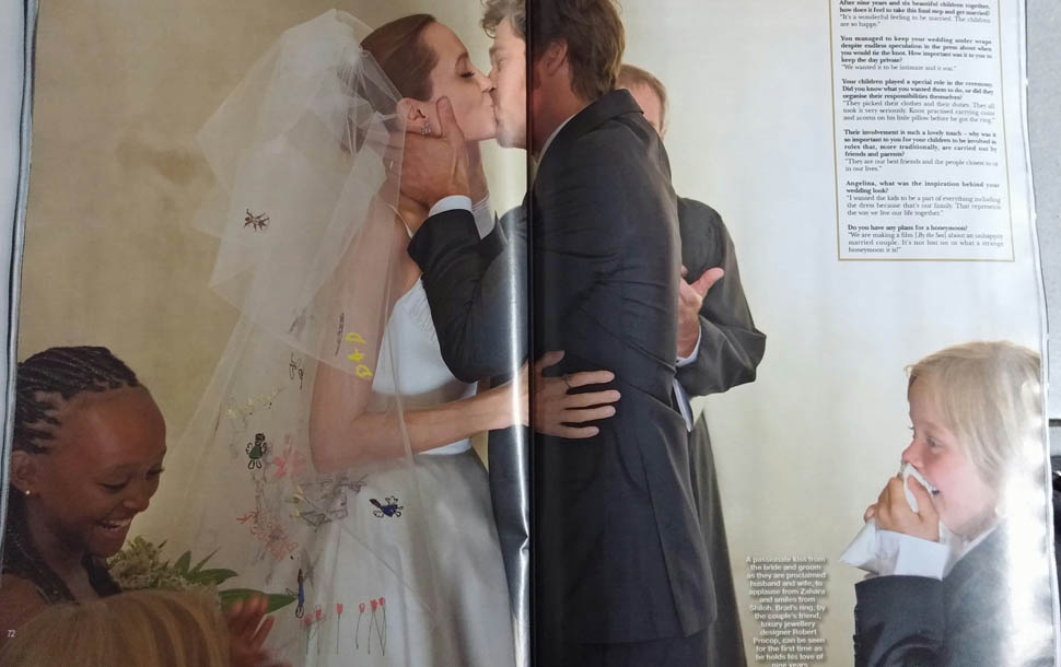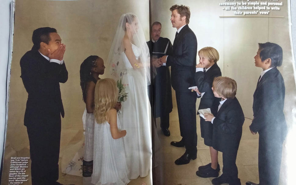 As for some of the other shots featured in HELLO, how about the kids giggling as their parents exchanged vows and kissed? SO cute. And Shiloh’s top hat? Come ON!