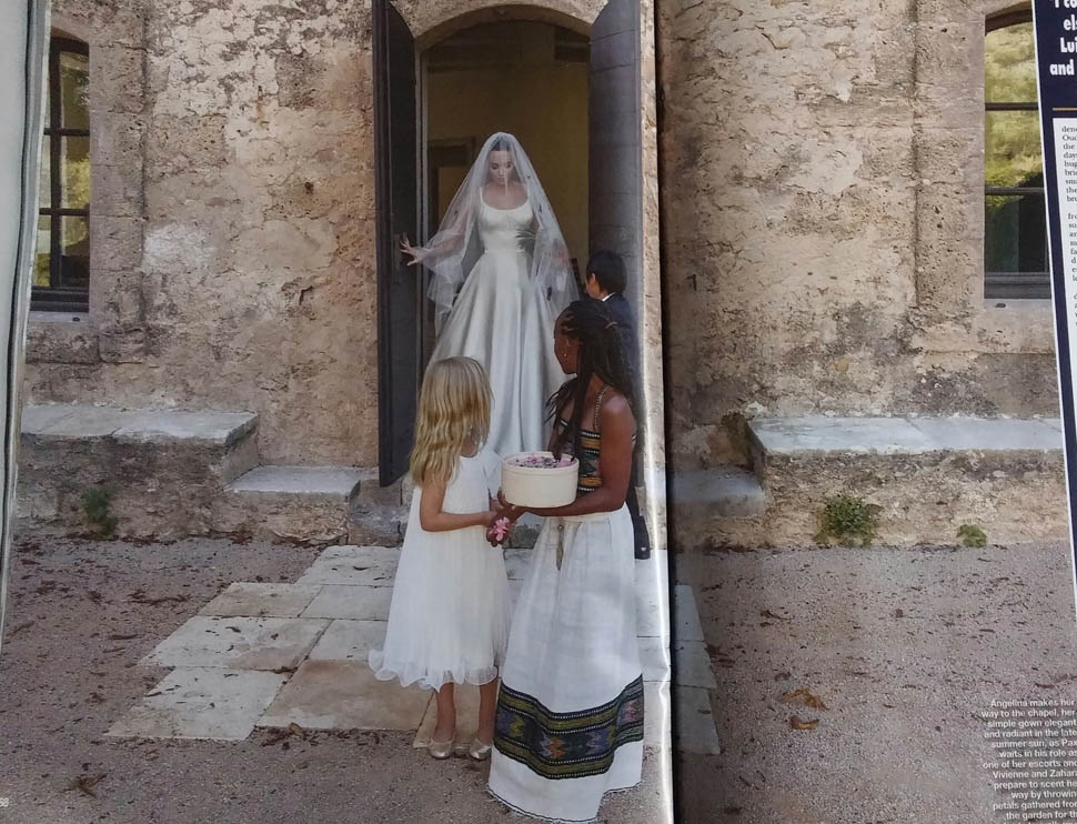 And here’s a sweet detail about the Brange wedding, that accompanied the Brange photos, as revealed in HELLO Magazine which went on sale this morning in the UK: Brad had a tribute to Angelina’s mother engraved in stone in the setting where the ceremony took place.