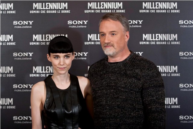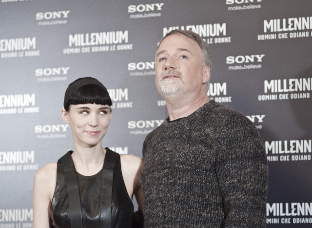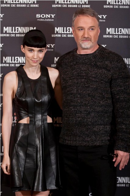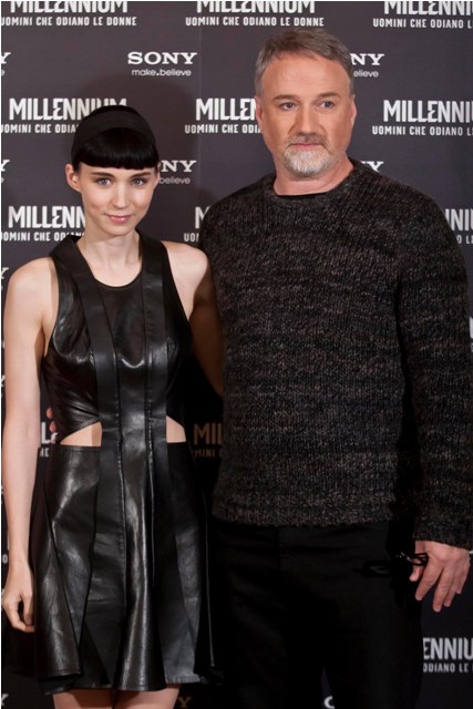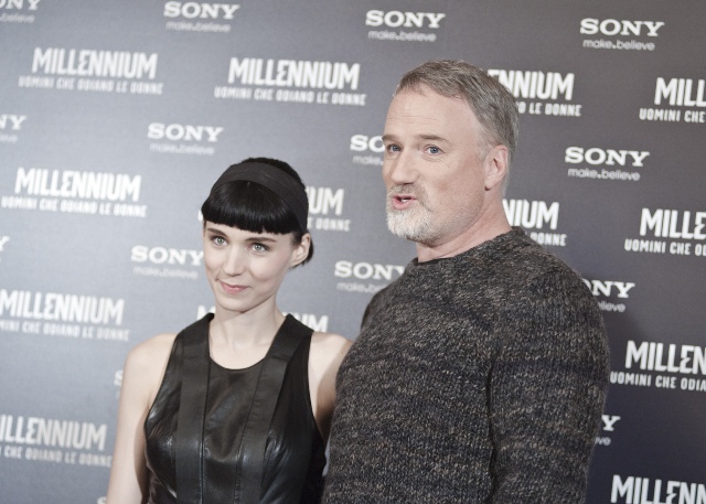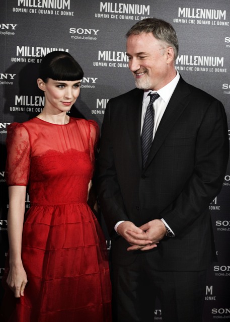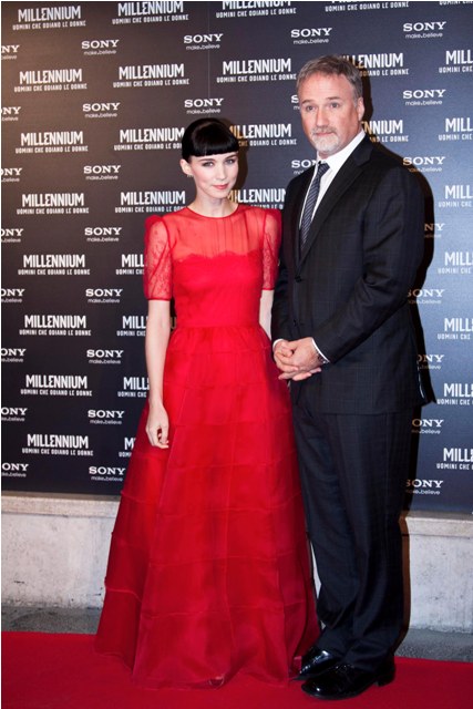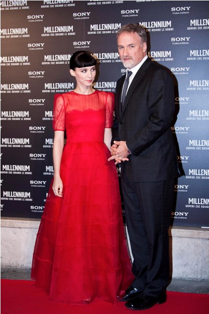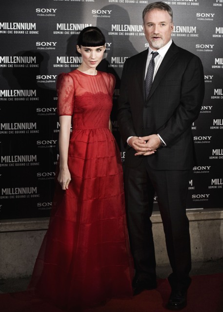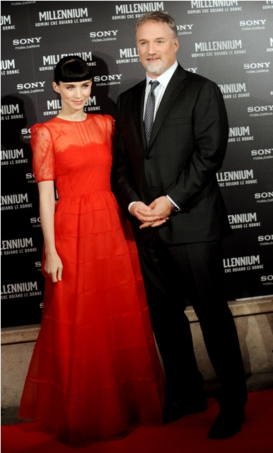 Attached - Rooney Mara and David Fincher in Rome for the photo call and premiere of the film yesterday.