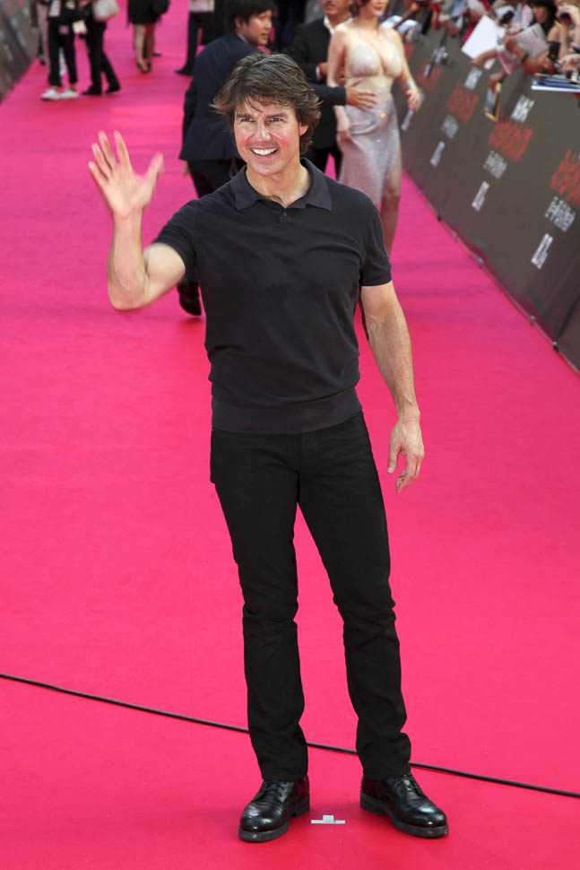 The real, the way it happened to me when I was interviewing him, was that he was gracious and professional – the exception among so many of his peers. Click here for a refresher. But the real was also a strange …neutrality? I don’t know if that’s the right word but in my subsequent conversations about him, the best way I could describe is that he gave me no vibes. Like you know how when you meet someone, even if you’re not personally attracted to them, even if there’s no chemistry between you and that person, you can at least imagine them vibing with someone? I can’t picture Tom Cruise vibing with anyone. I try and all I come up with is just Tom Cruise. And it’s not that it’s buried, it’s that it’s just… gone. He’s an amoeba. He’s a polite and considerate amoeba, but he’s an amoeba with no currents of passion. Or spontaneity. Like the minute I asked him a question – you have a great spy name, can you give me a spy name? I have two dogs and play golf and love to gamble and my first name is Elaine – he shut down. He couldn’t play. That’s Tom Cruise. He’ll only play…after he’s practised it a dozen times.