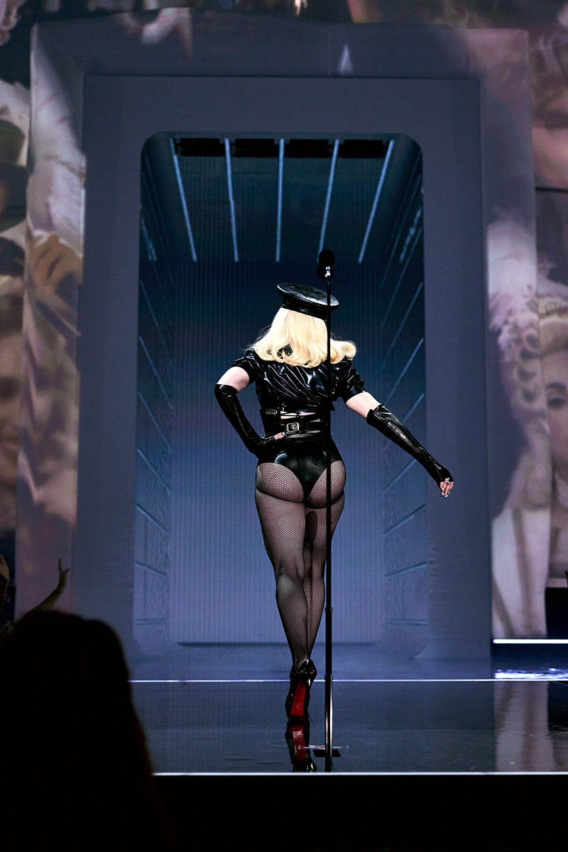 Of course no one had trouble identifying the show opener though: Madonna. Madonna and MTV are inextricably linked. And whether you’re a fan or not, it’s undeniable the influence that Madonna has had on the music video artform….though the artform that she appeared to be highlighting last night is her ass. Her ass blew up on social media immediately after she walked it offstage. Which, of course, Madonna being Madonna, she knew it would, she wanted it to. If there’s still any doubt about that, check out her Instagram post – three slides in this carousel are dedicated to her ass: