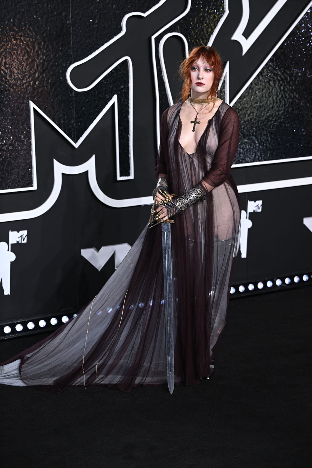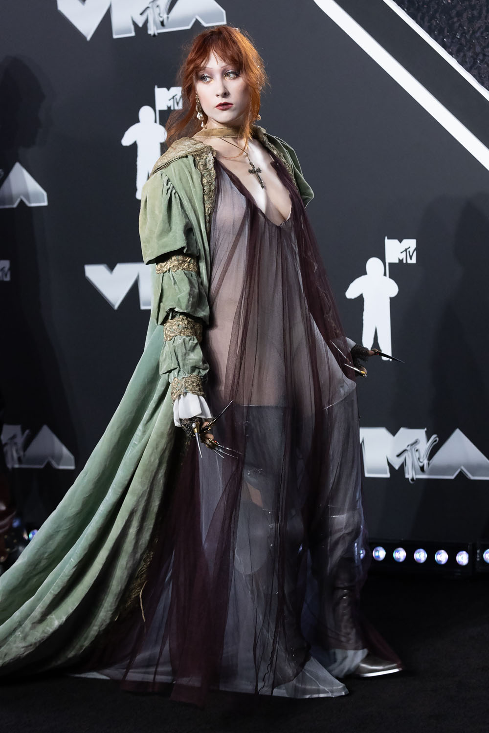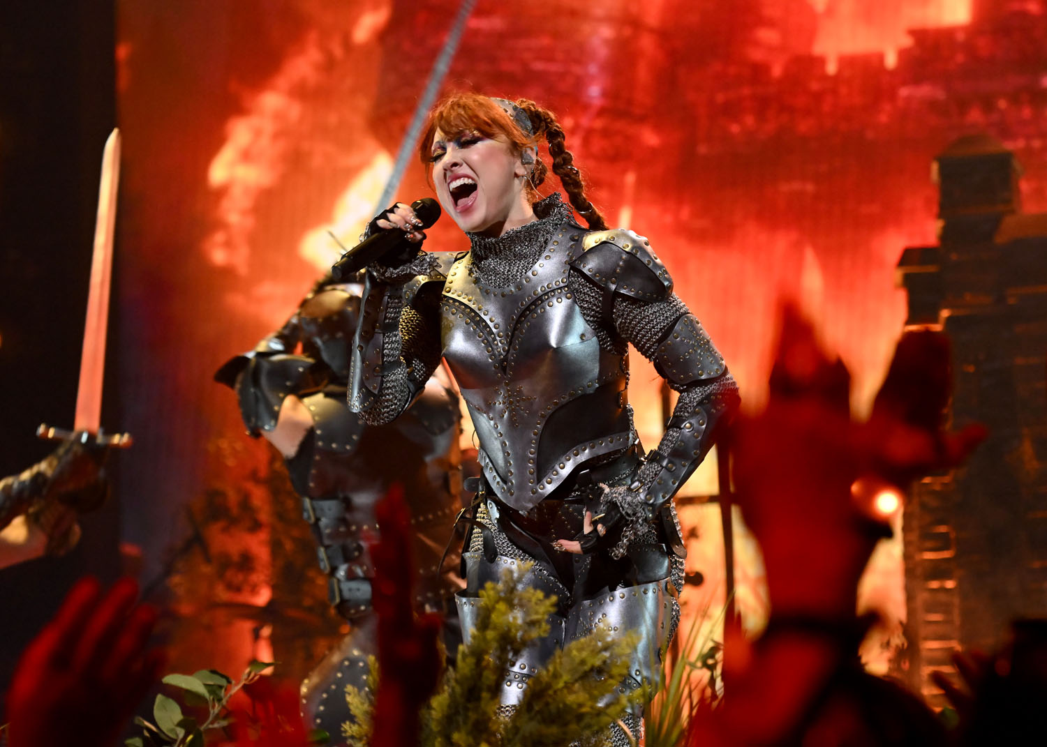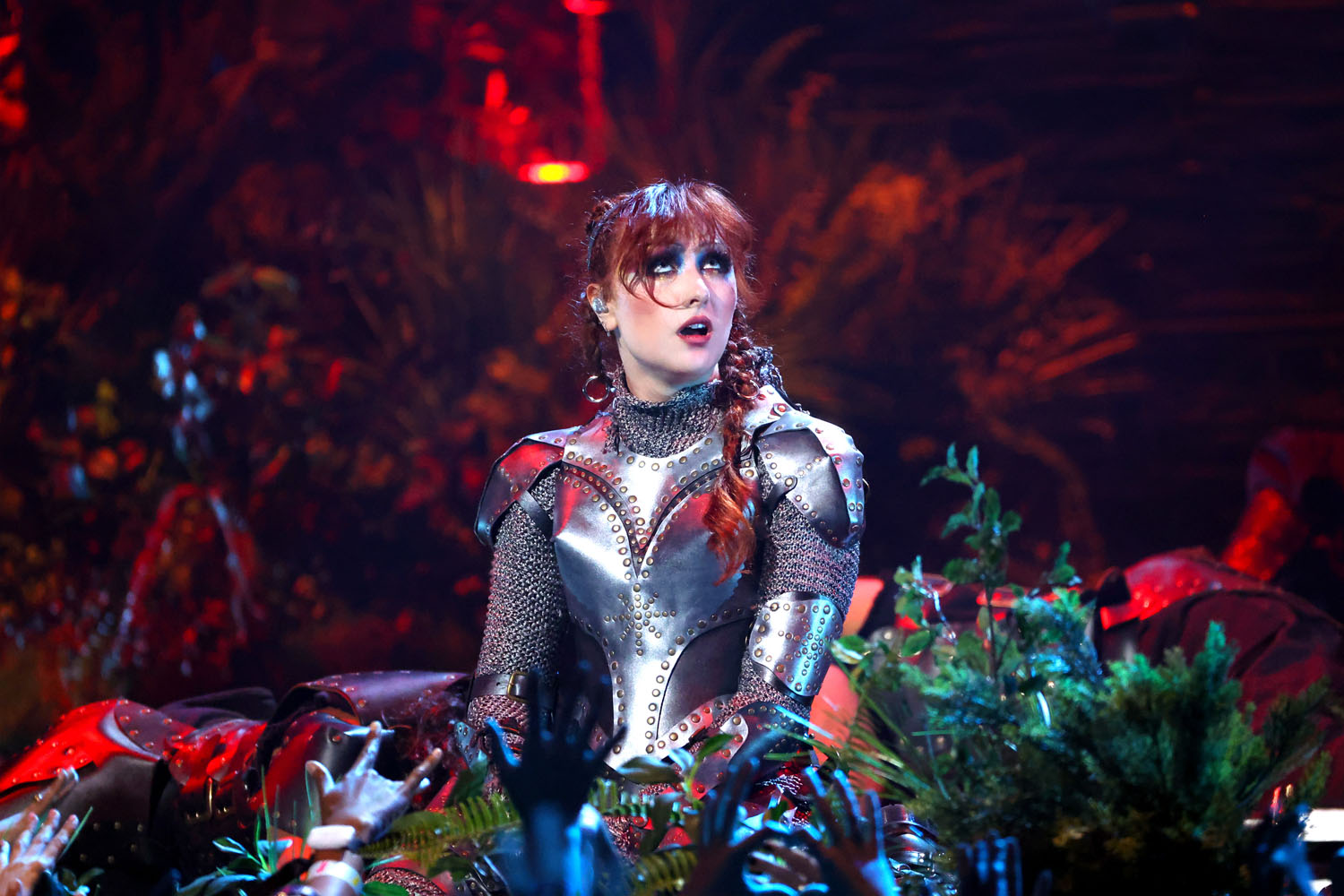 All of this comes from training – Lisa’s had years of experience perfecting her stage presence with BLACKPINK. So even though she’s an MTV rookie as a solo artist, last night probably wasn’t as much of a climb for her as it was for Chappell Roan. It’s been a whole year of firsts for Chappell, this was indeed her most high-profile performance and, for the most part, she killed it. Although I will say there’s room for improvement. The stage presence isn’t quite there yet and because she’s new to this, the performance itself, with the castle and the fire and the soldiers – it was all doing too much. You don’t need that much with a song like “Good Luck, Babe”. Some pyro here and there, sure. But it’s such a banger, a track that invites you to jump up and down the louder and higher she goes vocally, that everything else happening around her kinda takes away from it.