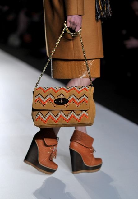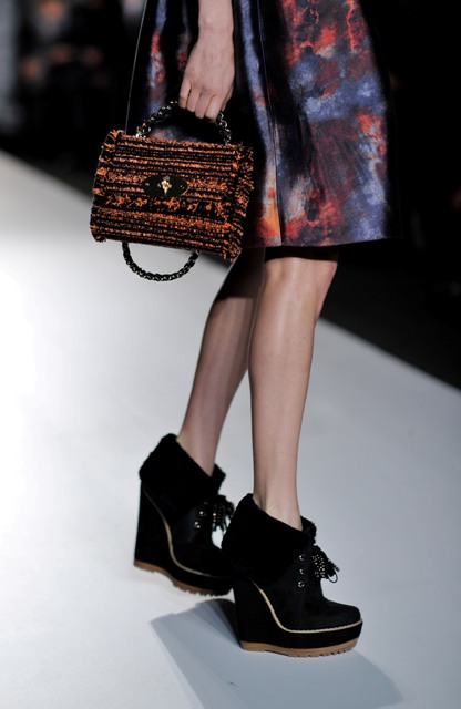Last year it was the First Nation themed sweaters. This year Mulberry’s making it the bags. I want each and every one of the bags sent down this runway. AND those wedges in every single colour, especially orange.