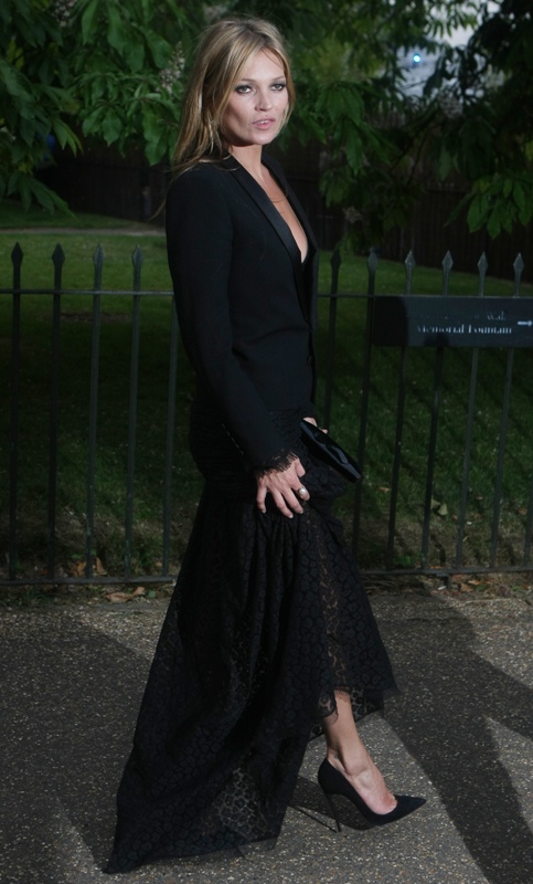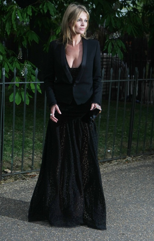 Naomi Campbell and Kate Moss were out last night in London, both in black. See how Naomi Campbell, supermodel, can make an otherwise stupid-looking dress look cool? Check out that…tubing (sort of?) … from the back. It’s amazing.
