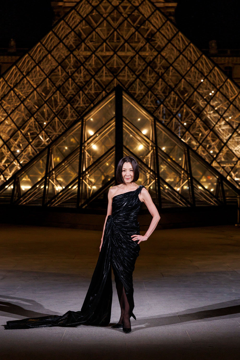 So here she is, at the Louvre, back with the fashion community in Paris last night.