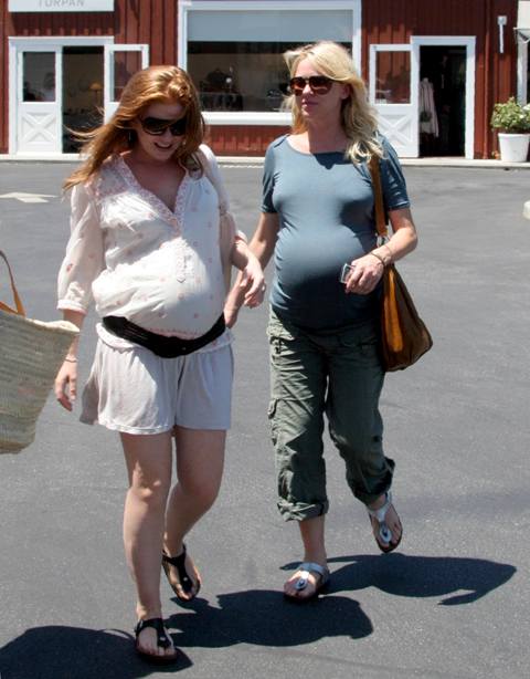 Isla Fisher and Naomi Watts both pregnant, hanging together yesterday in California and giggling together too - adorable, non?