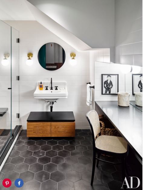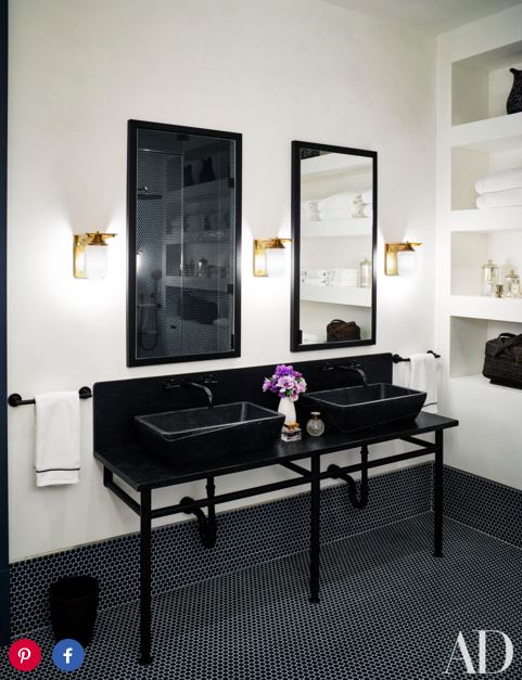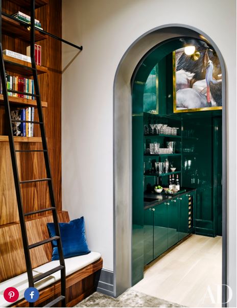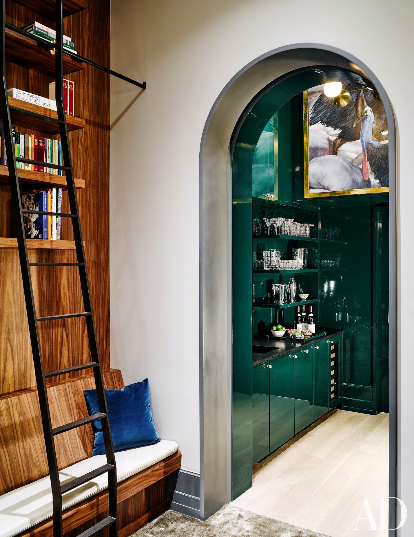 Their New York duplex has been featured in the new issue of Architectural Digest. So now we all get to creep on their taste. Which is excellent. At least I think so? That said, I’m a f-cking idiot when it comes to home style so maybe I’m not the best judge. But that kitchen is glorious. Am I a basic bitch for loving the black and white checked tile against the eggshell blue of the cabinets? Am I being swayed because I’ve always loved the idea of living in a home that’s big enough to require a ladder for the bookshelf?