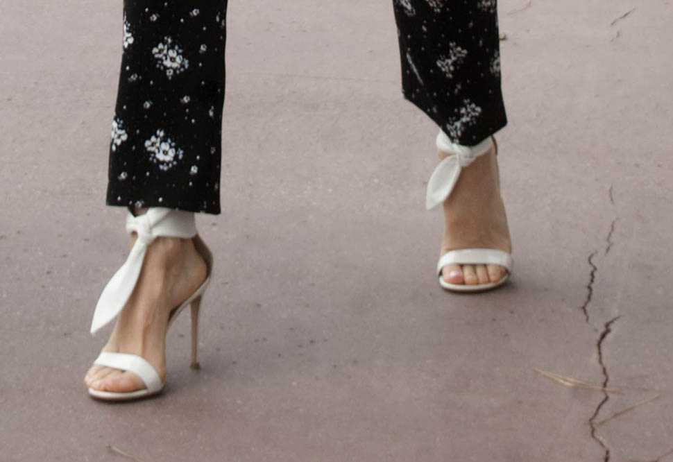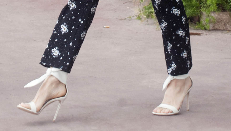 But the scarf around the neck and those adorable, adorable sandal-heels make the entire look really special.