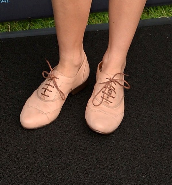 Obsessed with this entire outfit. LOVE the cutouts on both sides of the upper chest. Love the slouchy blousing of the dress. LOVE that instead of strappy sandals with heels she went with nude oxfords. I’m ripping this off.