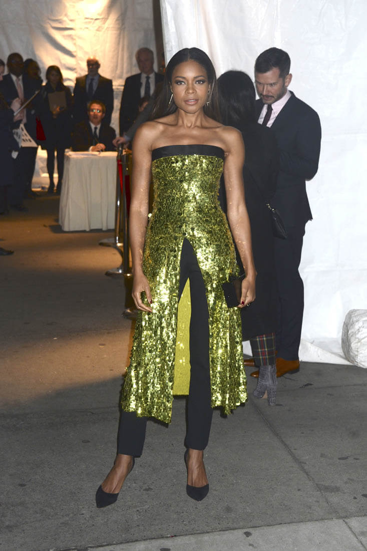 This colour on her! This split! The pants! I’m all about all the parts of this outfit and if I were wearing it I’d dramatically toss around each side of the dress like a matador, God I’d love it so much!