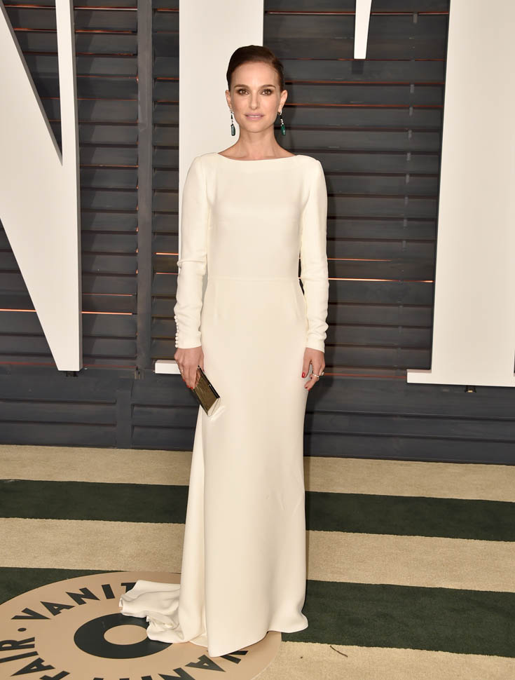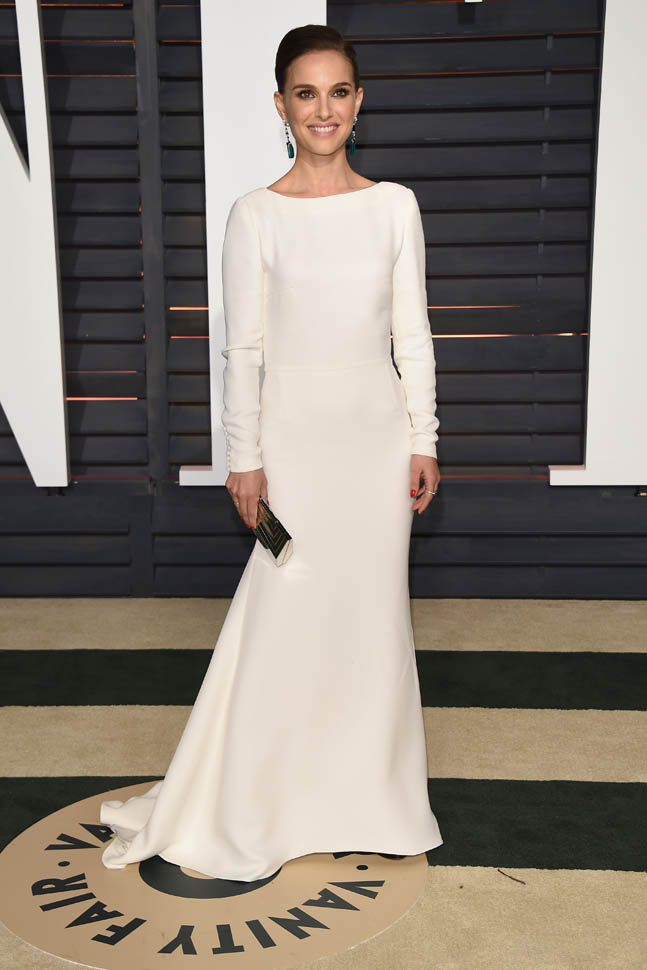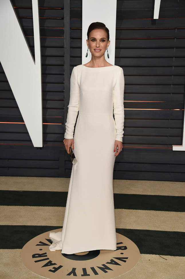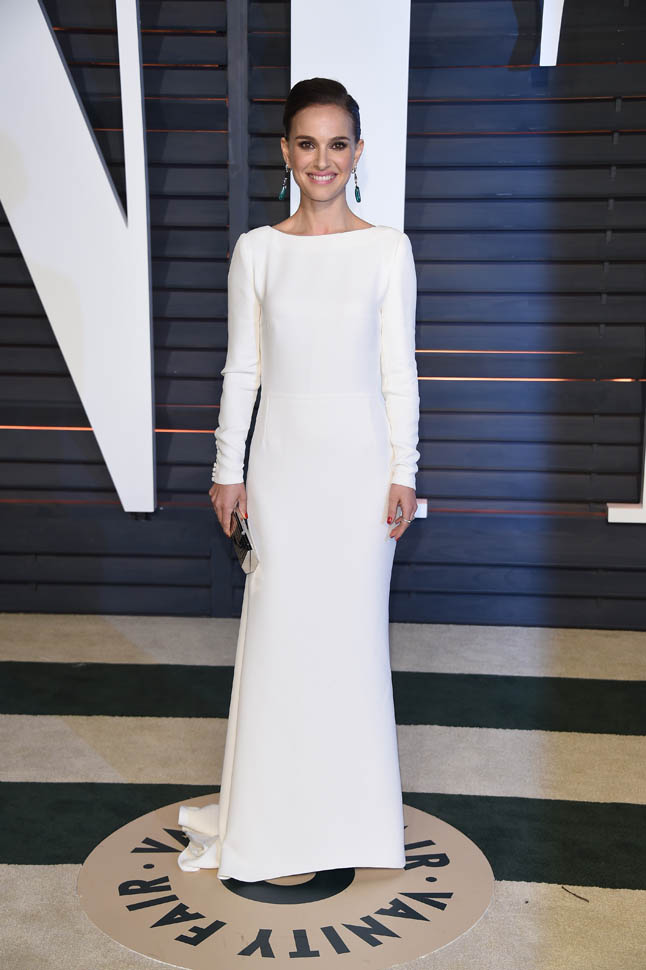 So here’s Natalie Portman at Vanity Fair. Kind of surprising to me because she was not a presenter at the Oscars. Which means she just came for the party, just came to hang out, just came to be seen in an elegant white dress, her face as beautiful as ever, looking more and more Audrey Hepburn. And without Benjamin Millepied, her husband, who attends with her whenever he can. Probably he’s in Paris then? So she would have made a point of going …to go. And that tells me that Natalie Portman still needs to play that game. Is re-engaging in the game?