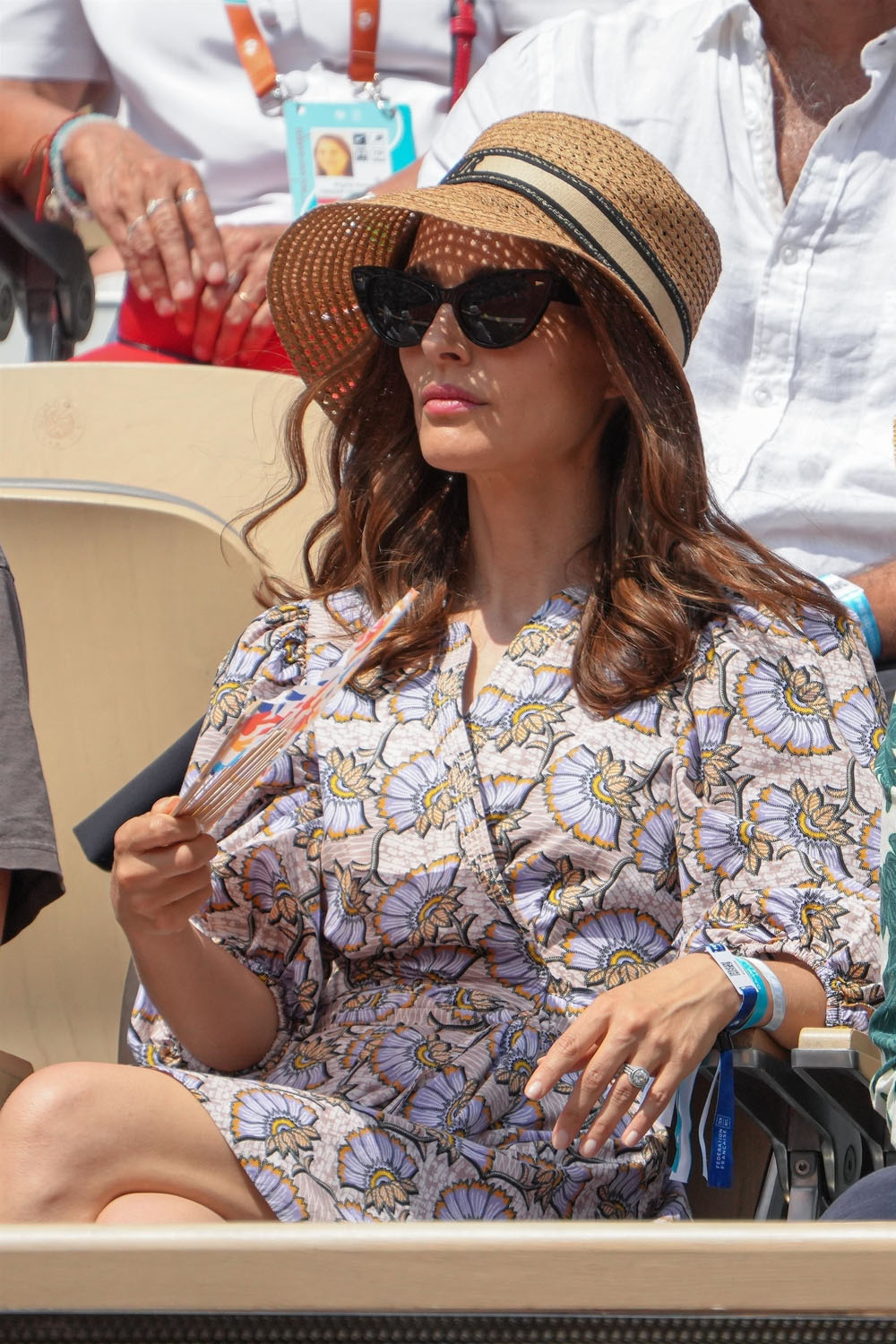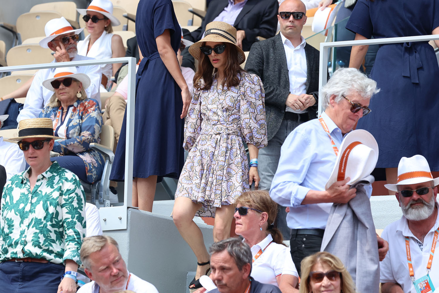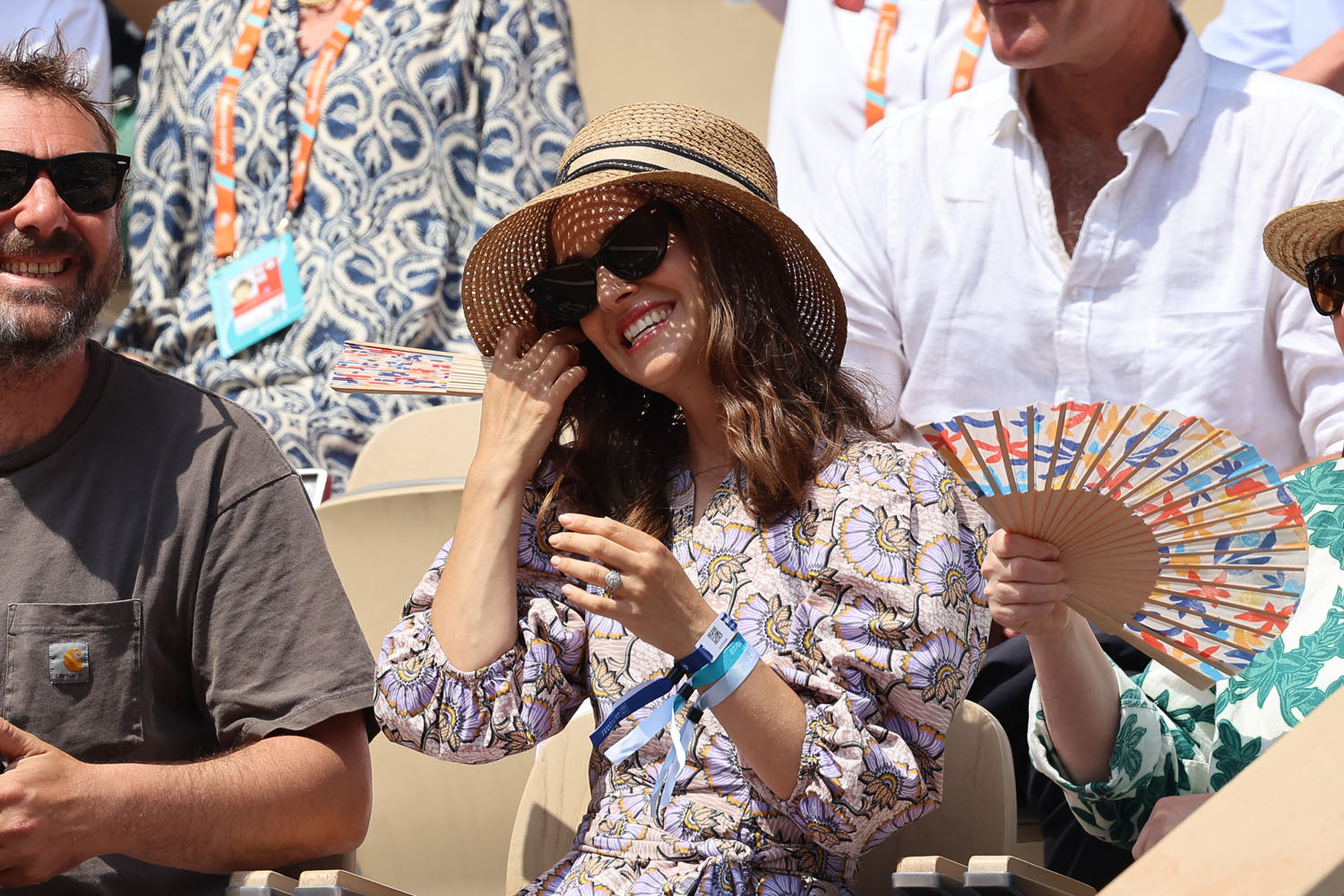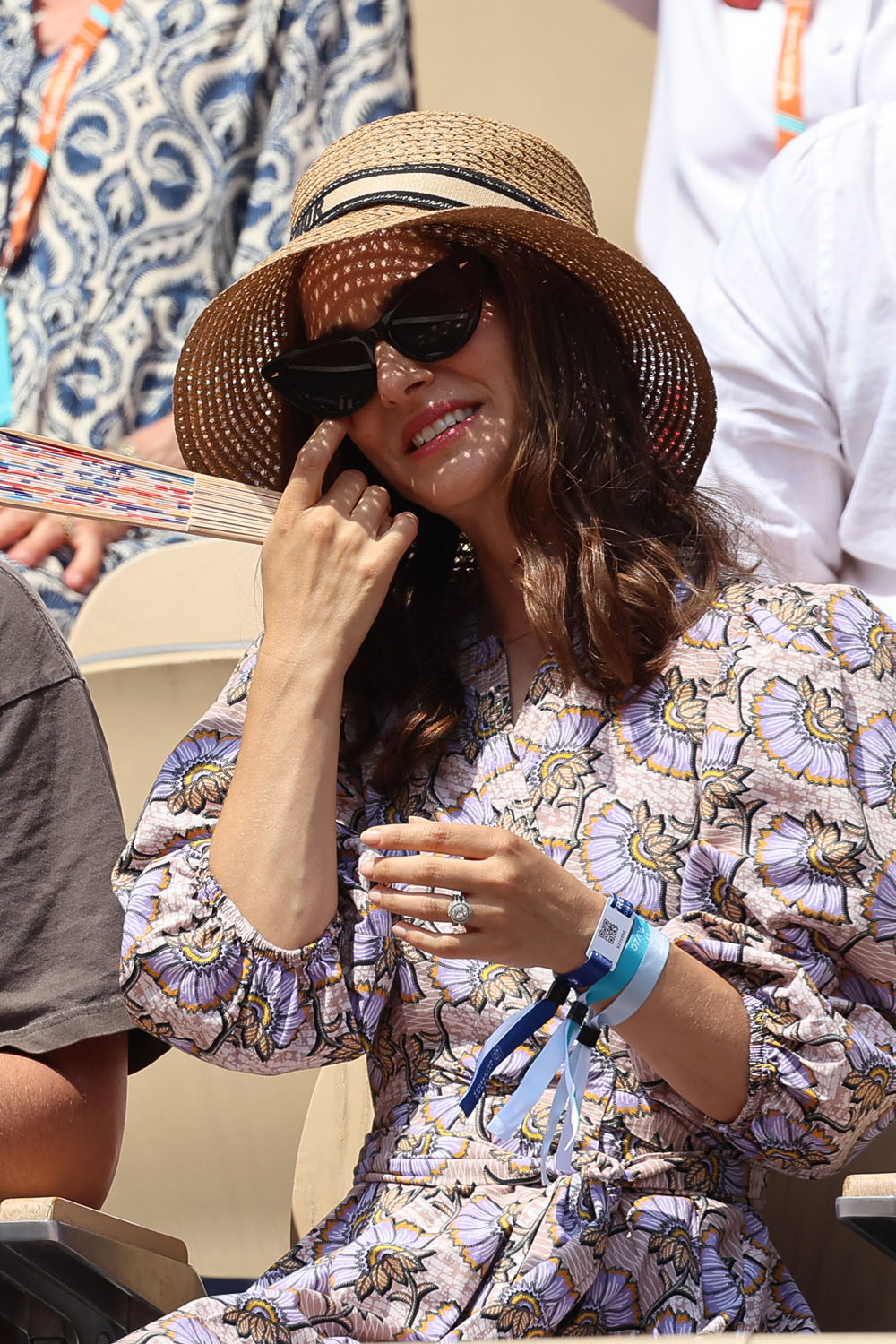 Natalie Portman was at the French Open yesterday in a very cute outfit – Dior hat for sun protection, floral dress, and espadrille wedges. That’s not the accessory that people were paying attention to though. Because at various points during the match, Natalie lifted her left hand and her engagement ring was prominently displayed. Up until a week ago this wouldn’t be a conversation but all that changed when French publication Voici reported that Natalie’s husband Benjamin Millepied was having an affair with Camille Etienne, a climate change activist.