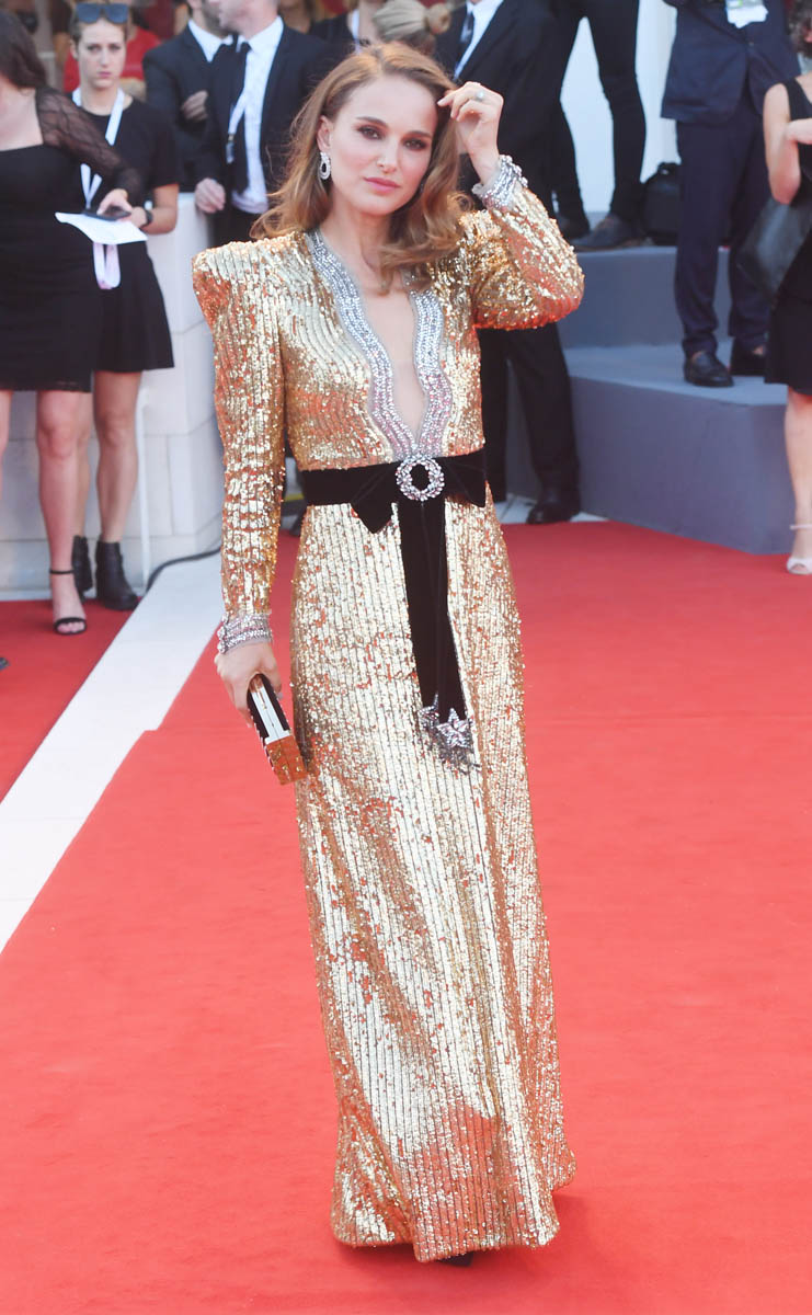I’m calling it a Big Gold Dress, here on Natalie Portman, because while it’s not, like, it takes up a lot of real estate or anything but the way the dress looks on her it feels like it’s taking up more space than it should, you know?