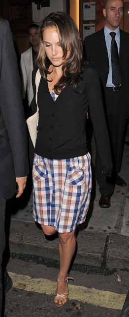 Natalie, obviously, is fine. And was out last night in London with some friends, enjoying a 3 hour dinner at Nobu before emerging in a really cute checkered dress with heels and a blowout. On the fancy side, for her that is.