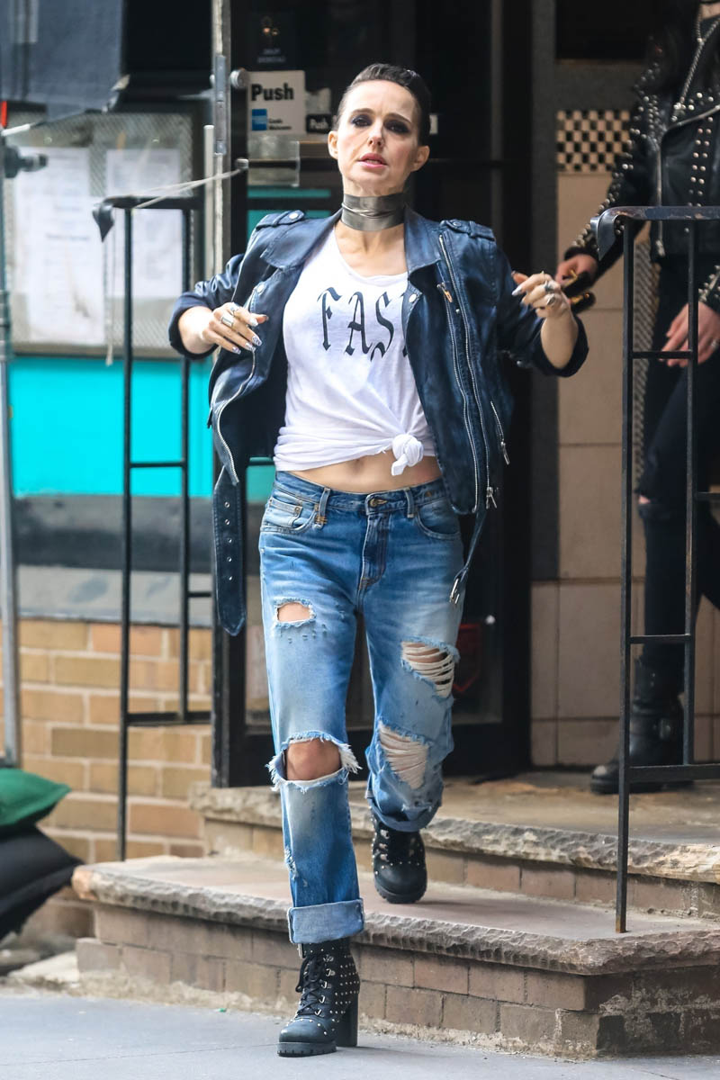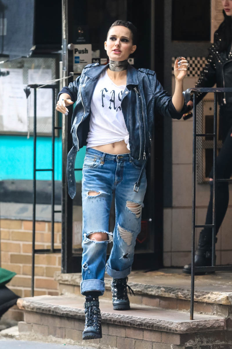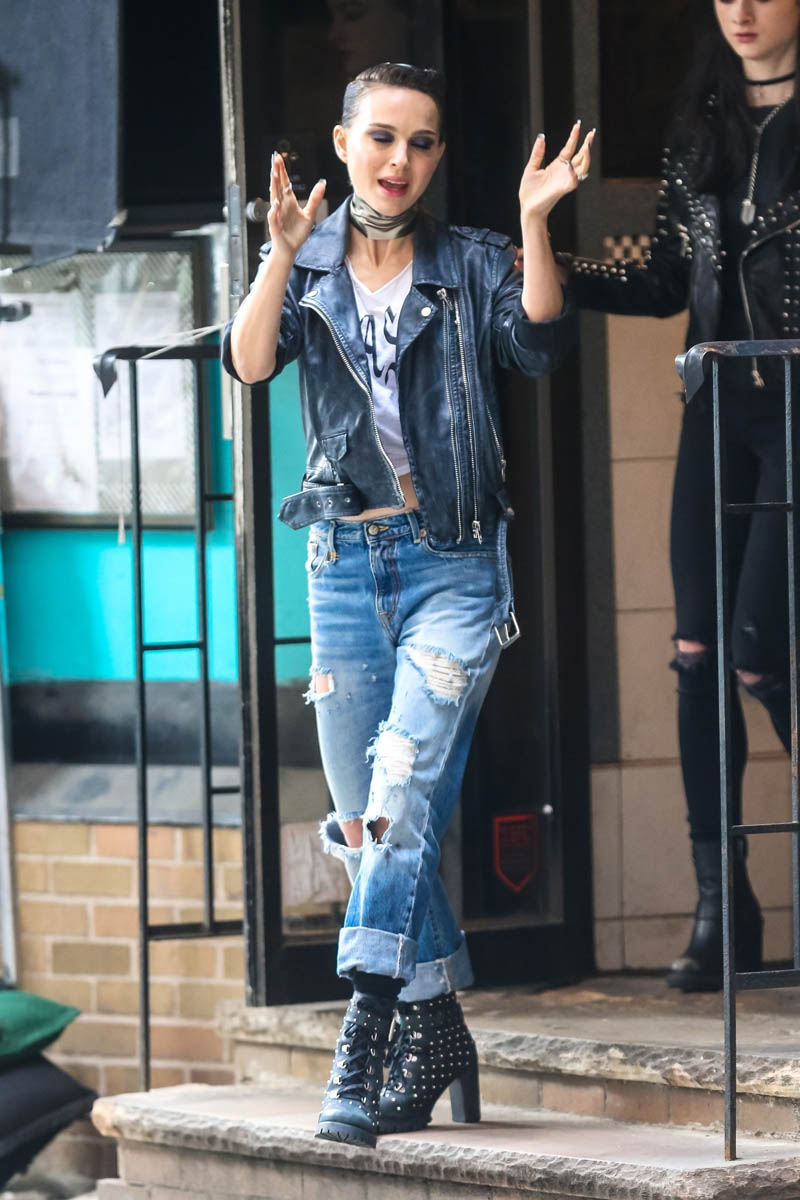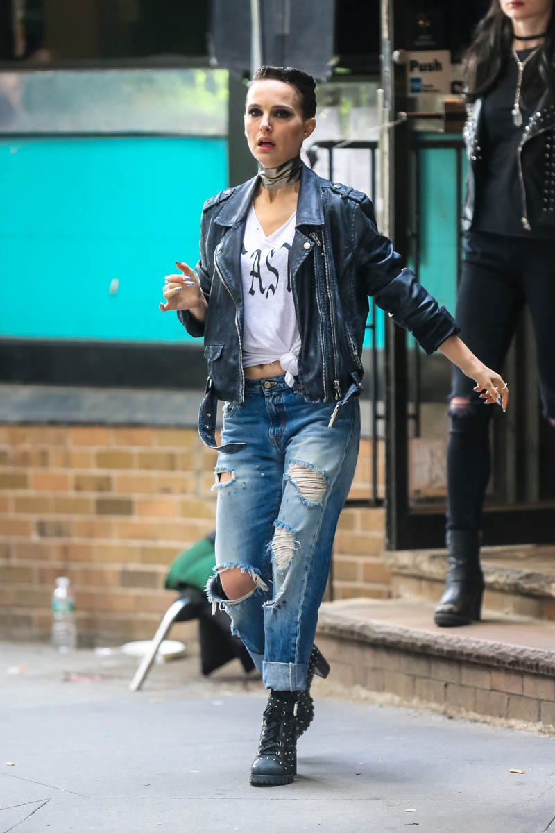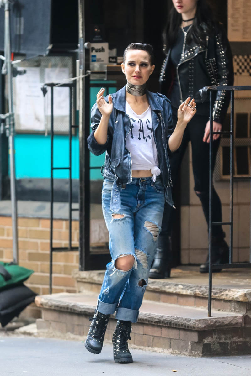 Natalie Portman is currently in New York shooting a new film called Vox Lux. She plays Celeste who per Variety “rises from the ashes of a major national tragedy to pop superstardom. The film spans 15 years and traces important cultural moments from the singer’s perspective, starting in 1999 and ending in the present day.” Jude Law is also in this movie.