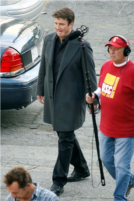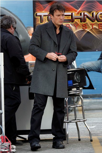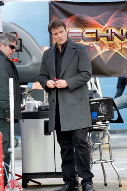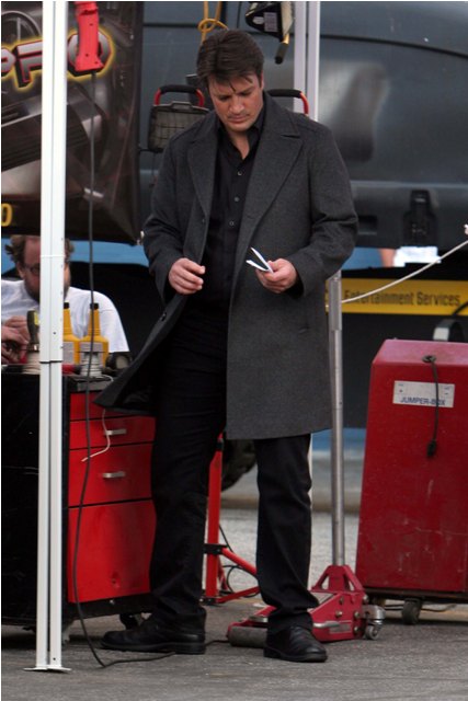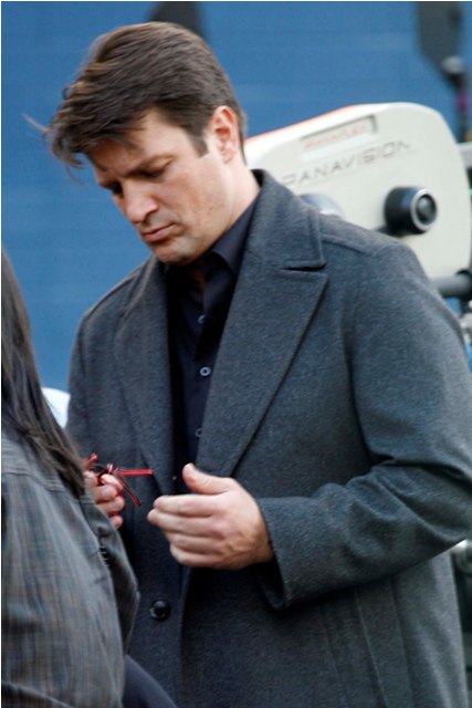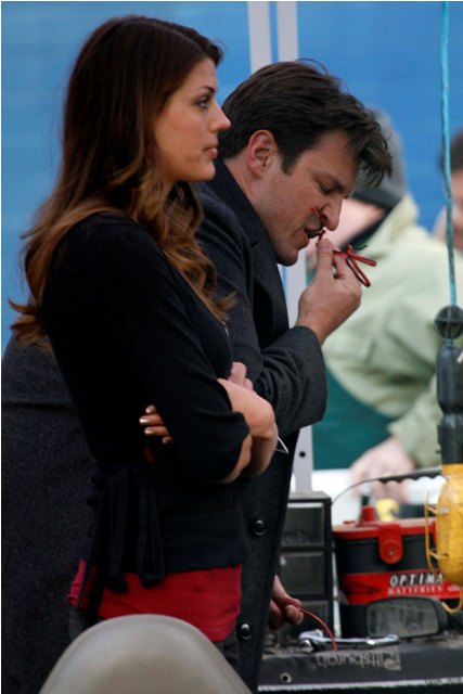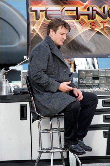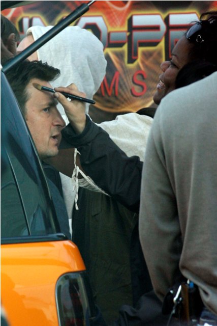 I’m asked to keep a lookout all the time for new Nathan Fillion photos. So here he is yesterday on the set of Castle, with fellow Canadian co-star Stana Katic, getting his makeup done, preparing to shoot new scenes.