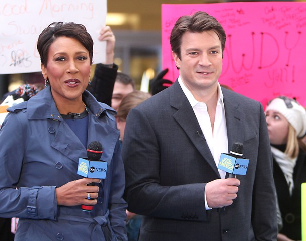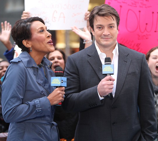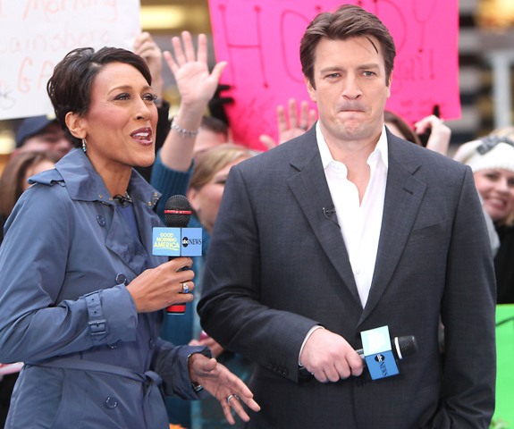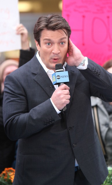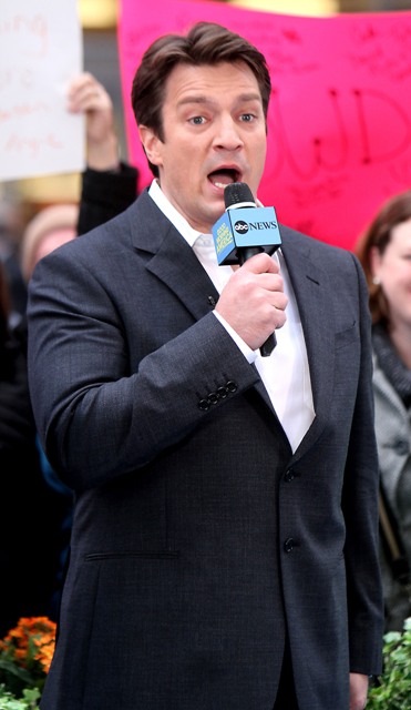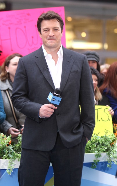 It’s Thanksgiving in America tomorrow and, as Sarah told me, the start of a four day weekend. Before you all go off and enjoy your football, turkey, and Black Friday, here’s Nathan Fillion on Good Morning America on Monday. Get a lot of requests for Nathan (hi Mary!) but photographers are always too preoccupied with housewives and Pippa Middleton. Will always post when there’s an opportunity.