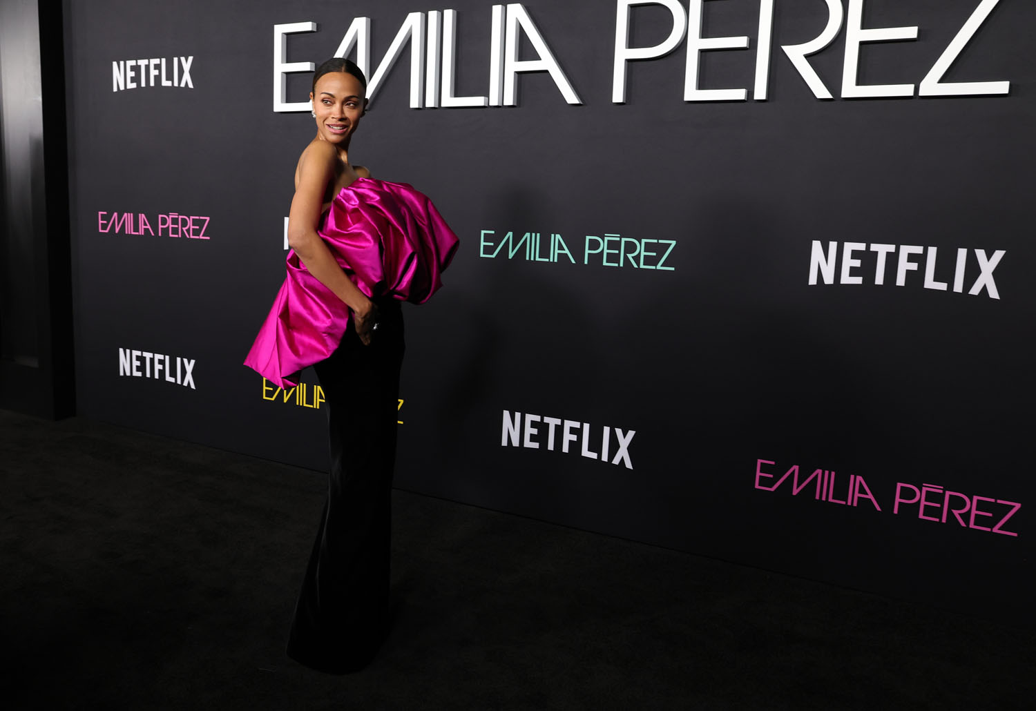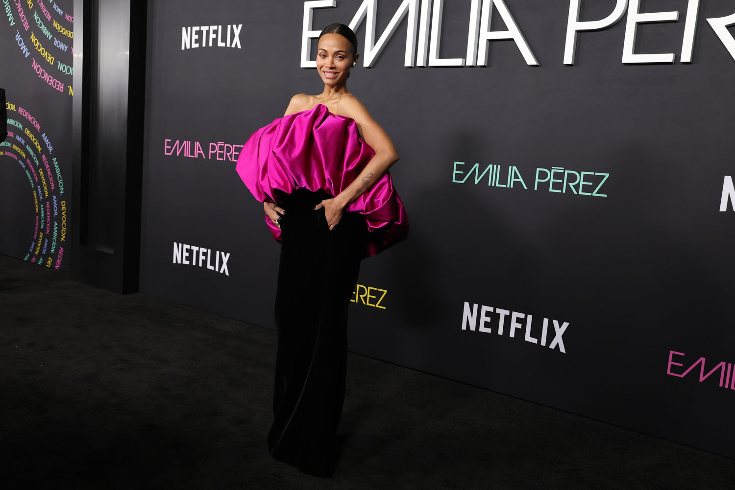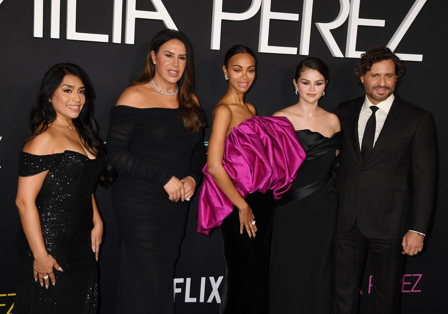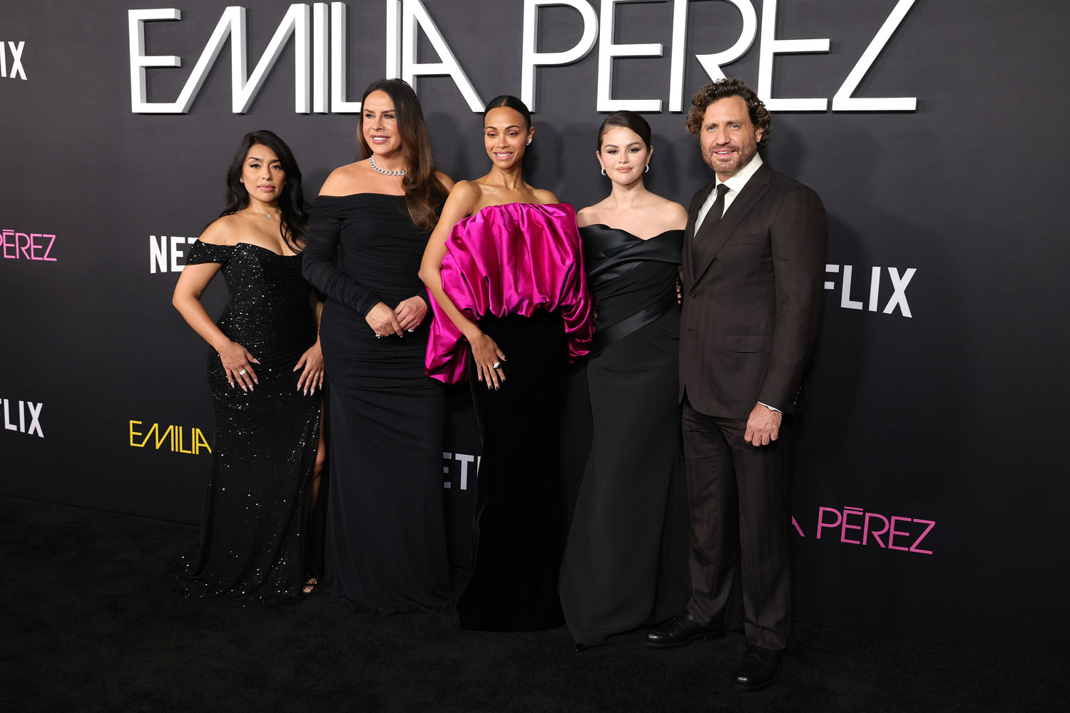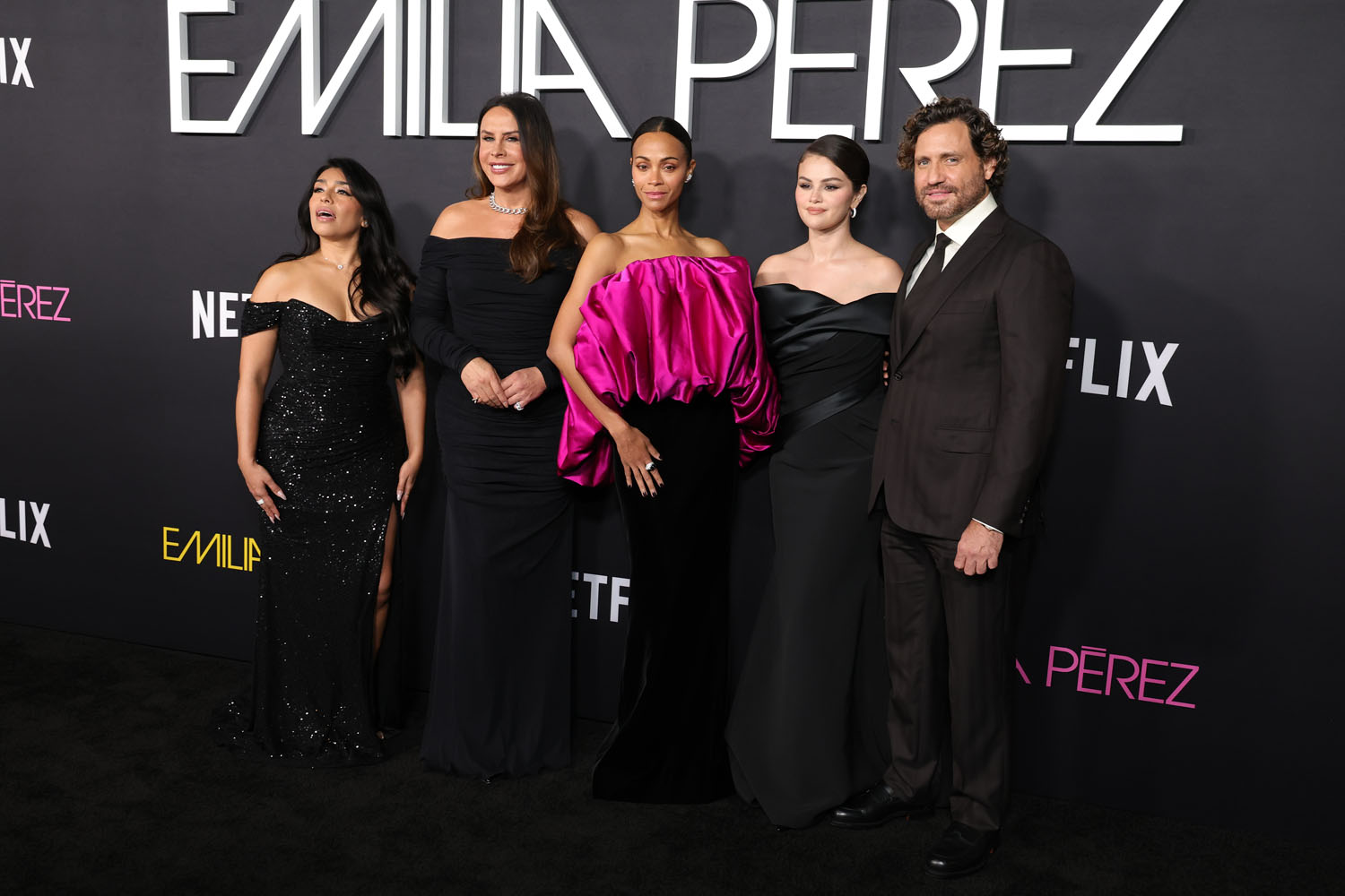 One upside to the lengthy press run for Emilia Pérez is that all of the actresses come to play on the red carpet—or black carpet, as the case may be—every time. The best look of the LA premiere goes to Zoe Saldaña, because I love hot pink AND her dress has pockets. It also doesn’t help that Selena, Adriana Paz, and Karla Sofía Gascón all wore variations on black, off-the-shoulder gowns. It’s too same-y. But then, this press tour HAS been going on for a million years, so their stylists are probably burnt out. Here’s hoping they can find a second wind for awards season, because Netflix is spending money like they expect a LOT of nominations.