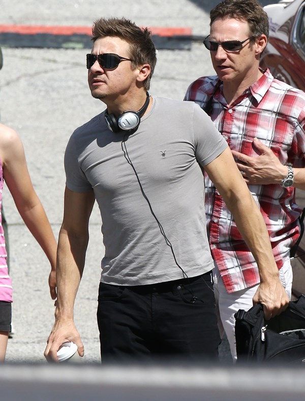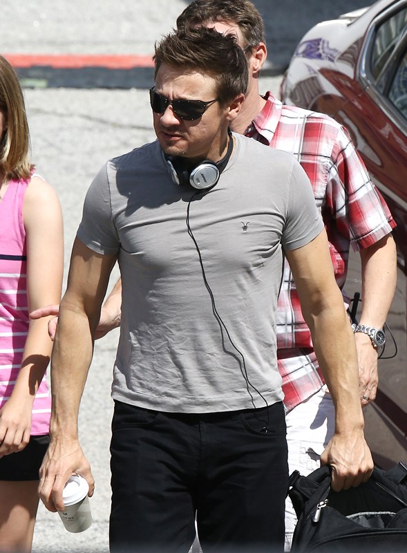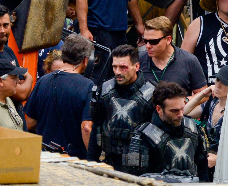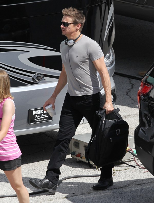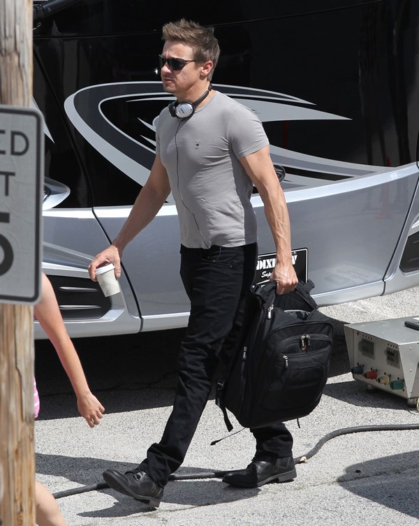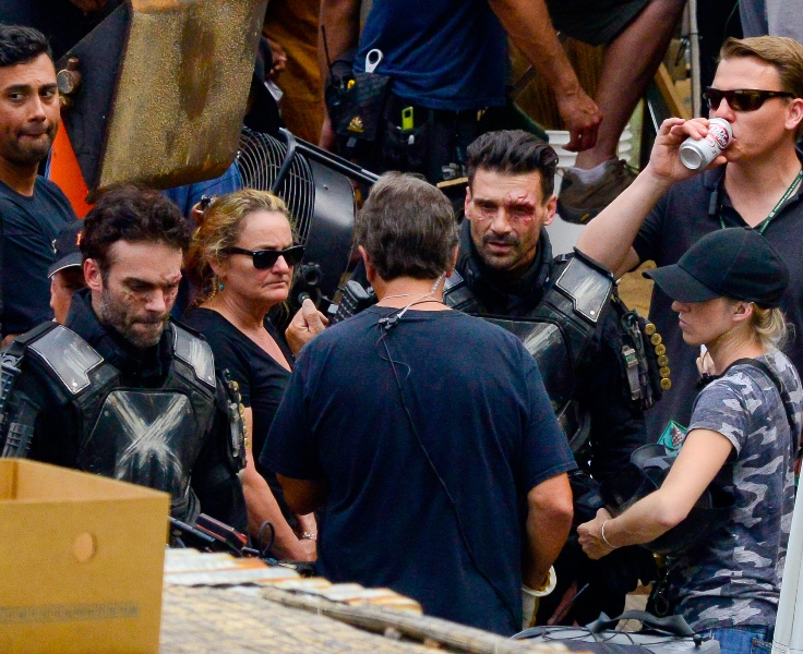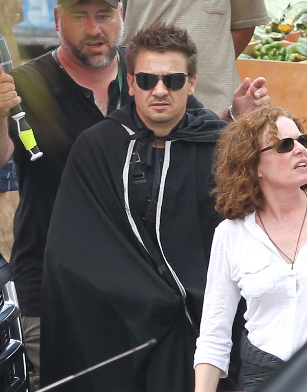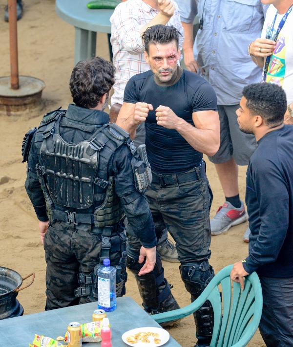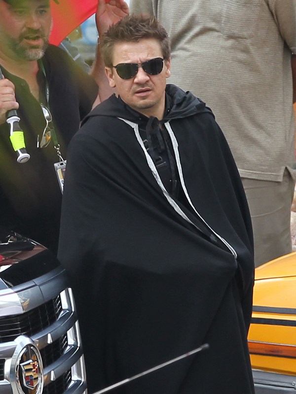 And I mean EVERYONE, up to and including the stunt doubles. Filming for Captain America: Civil War continues and more set photos are coming out of Atlanta—hilariously doubling for Nigeria—and we’ve got more of Chris Evans looking like a life-size action figure in his Cap suit, and better shots of Anthony Mackie in Falcon’s new souped-up gear, and though we can see Elizabeth Olsen’s wig action, there still isn’t a good look at her second generation Scarlet Witch costume. Jeremy Renner is on set now, too, but I think everyone’s still mad at him so I don’t know if anyone is paying him attention right now. He’s still on the naughty step. There are also shots of Captain America throwing down with the villain Crossbones, aka Brock Rumlow. I would like to remind everyone that Frank Grillo is forty-nine. Not pictured is Scarlett Johansson, although Black Widow is involved in this scene, too.