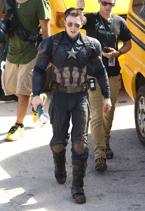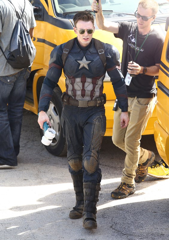 They’re shooting the first big action set piece of the movie, the one that kicks off the “civil war” after a battle between Cap’s new Avengers and Crossbones leaves a lot of innocent bystanders dead. As a result, world governments start cracking down on superhero activity. Tony Stark takes up the mantle of Team Let The Government Control Superheroes and Captain America leads Team That’s A Terrible F*cking Idea. Fans are vexed because no one is really sure what any of this has to do with Bucky Barnes/Winter Soldier, who’s supposed to be a major character in the movie.
