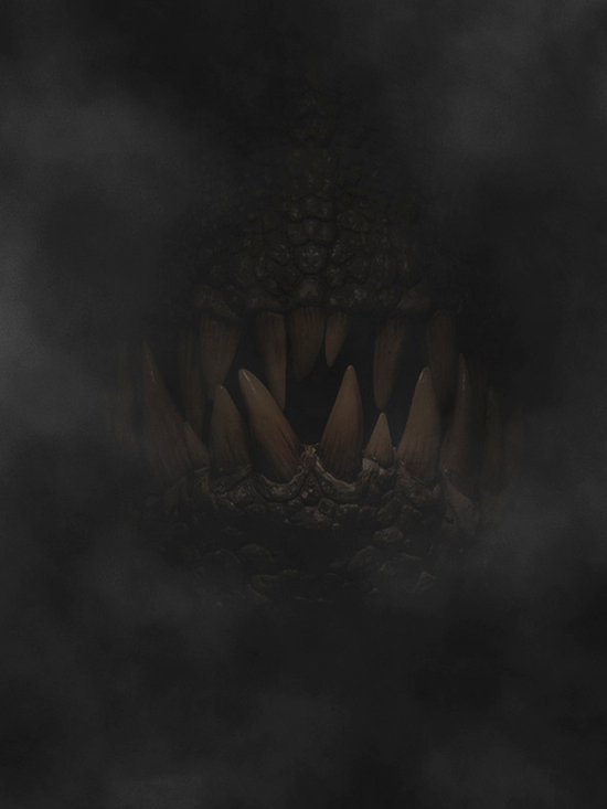 There’s a viral site dedicated to tease mankind’s latest folly, including a new image of just its pants-sh*tting teeth, and the information that its name translates to “untamable king”. So you cooked up a monster so terrible you deemed it the “untamable king”. Great idea, guys! I hope the scientists get eaten first for their sheer stupidity and hubris.