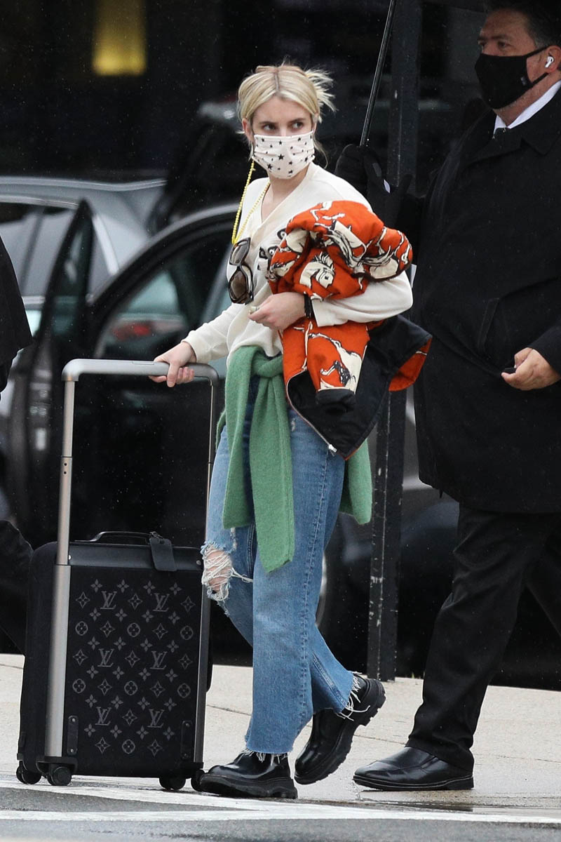 Here’s Emma Roberts arriving in Boston this week likely to begin work on About Fate, reuniting her with Tiffany Paulsen who wrote Holidate, the holiday rom-com that came out last year on Netflix. I never saw it, but the thing about holiday rom-coms and Netflix is that you can throw one on whenever the mood strikes, and it doesn’t have to be during the holidays. Netflix has been steadily building up its library of holiday rom-coms and at this point you can probably binge two or three a day for an entire month and still not be caught up.